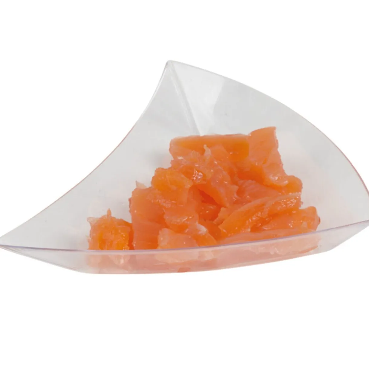 Coupelle triangle plastique, dim. 10x10x3 cm.