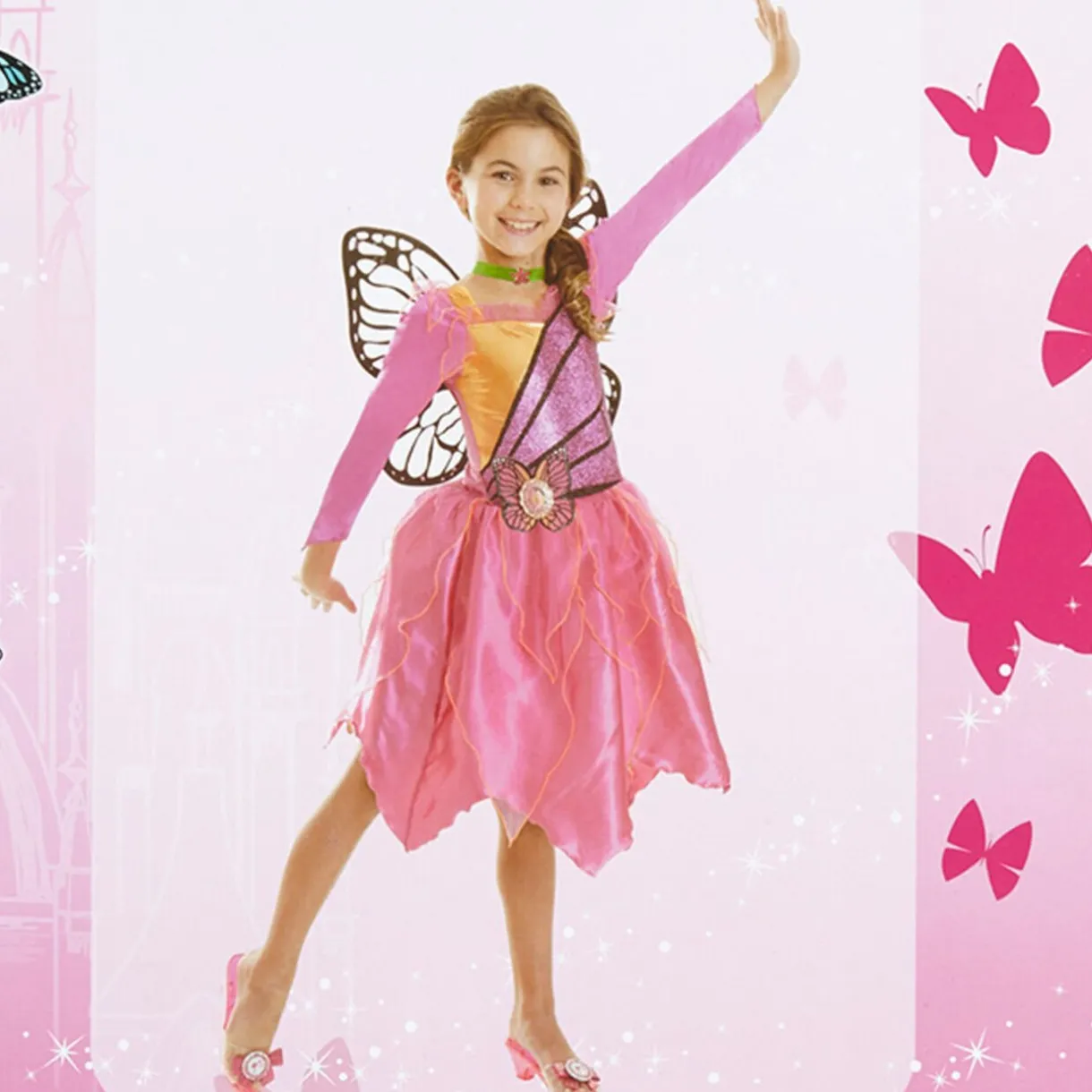 Déguisement Barbie Mariposa comprenant 1 robe, des ailes et 1 collier. Taille 3/5 ans.