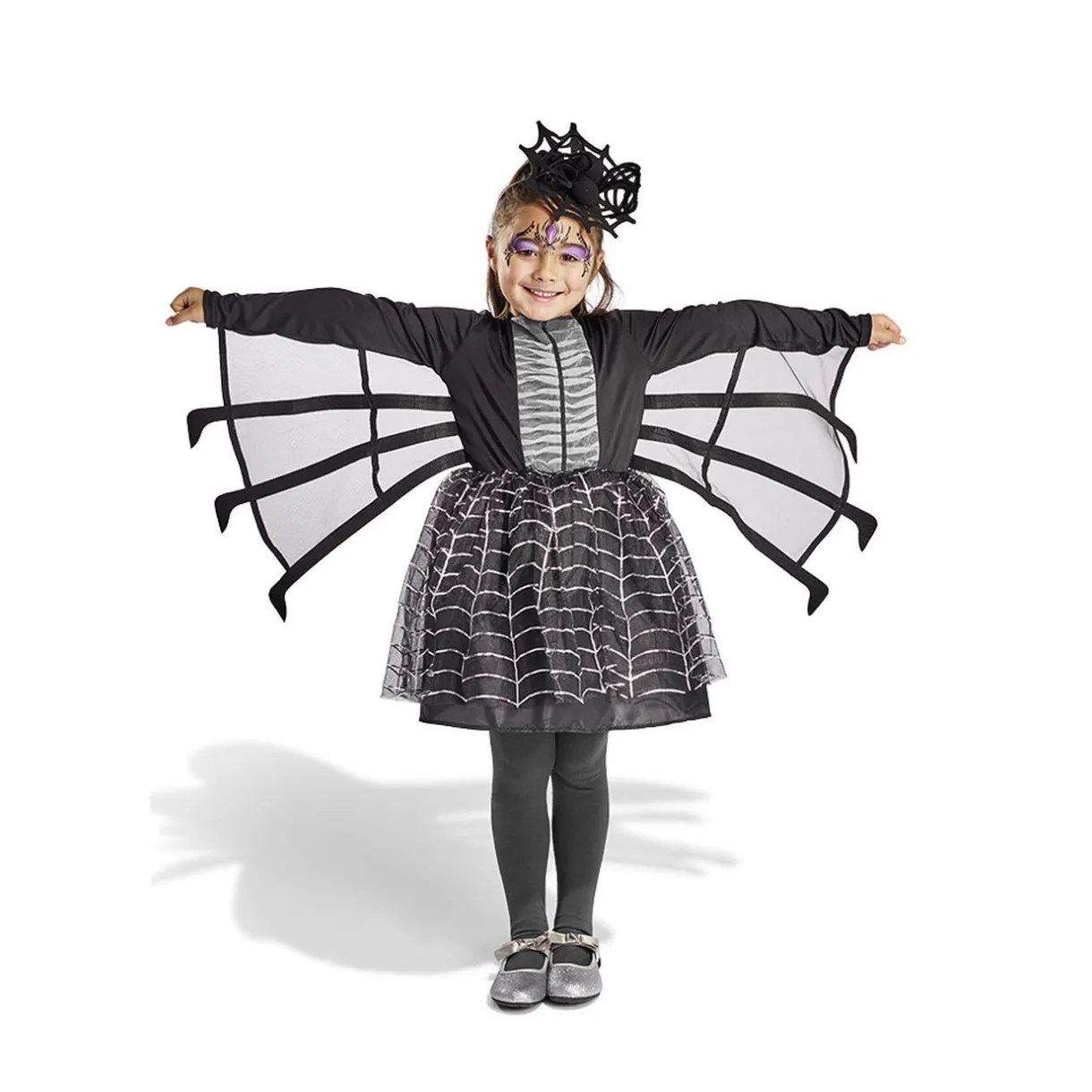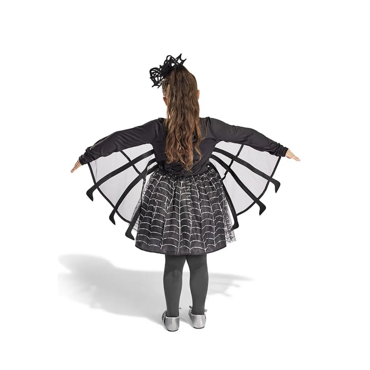Déguisement araignée pour enfant composé d’une robe effet toile et d’un serre-tête assorti, parfait à l’occasion !