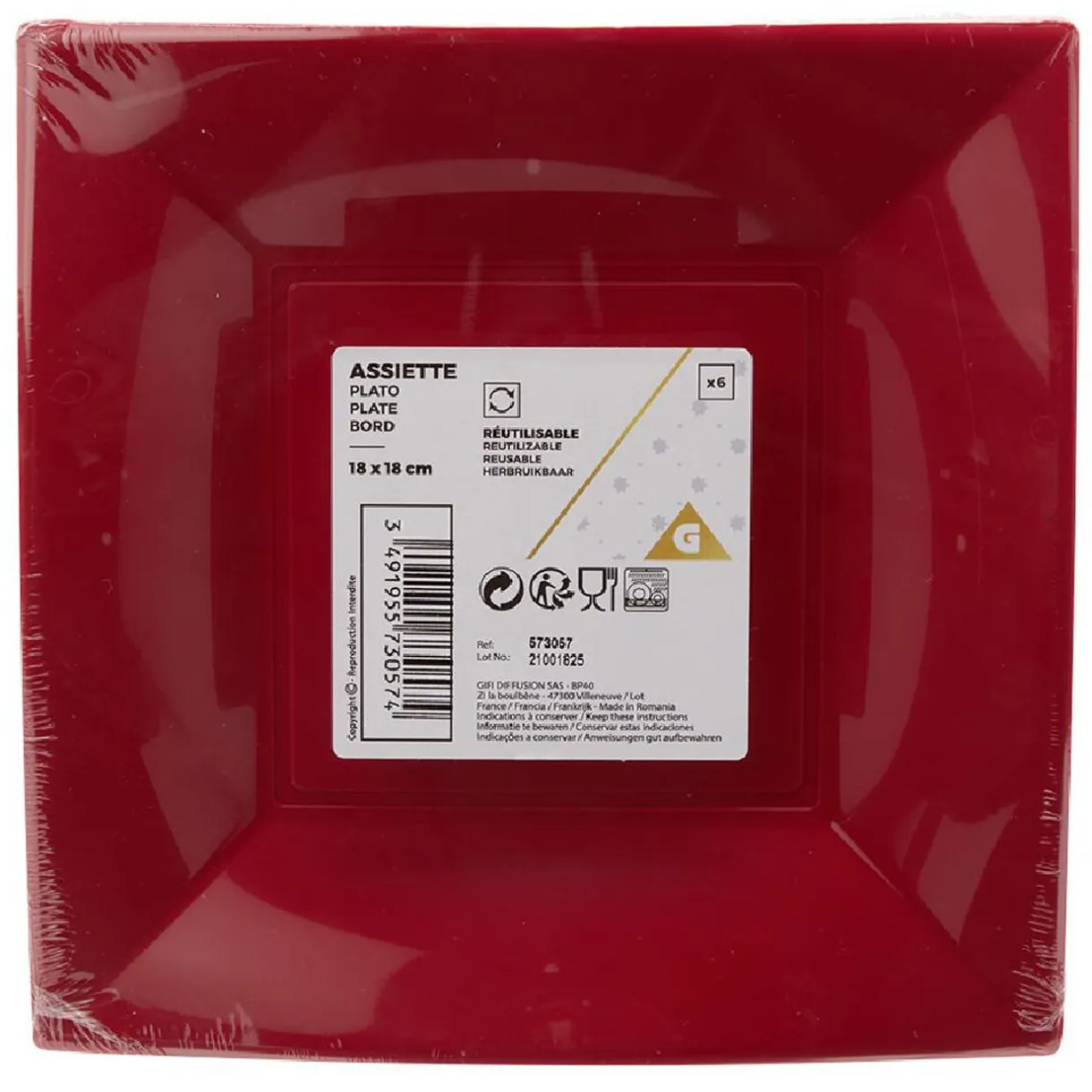 Lot de 6 assiettes carrées en plastique uni rouge pour déguster vos desserts dans un esprit de fête !