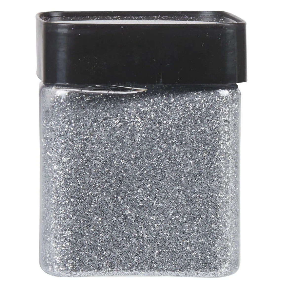 Boîte de paillettes décoratives argentées, cont. 165 gr, plastique.
