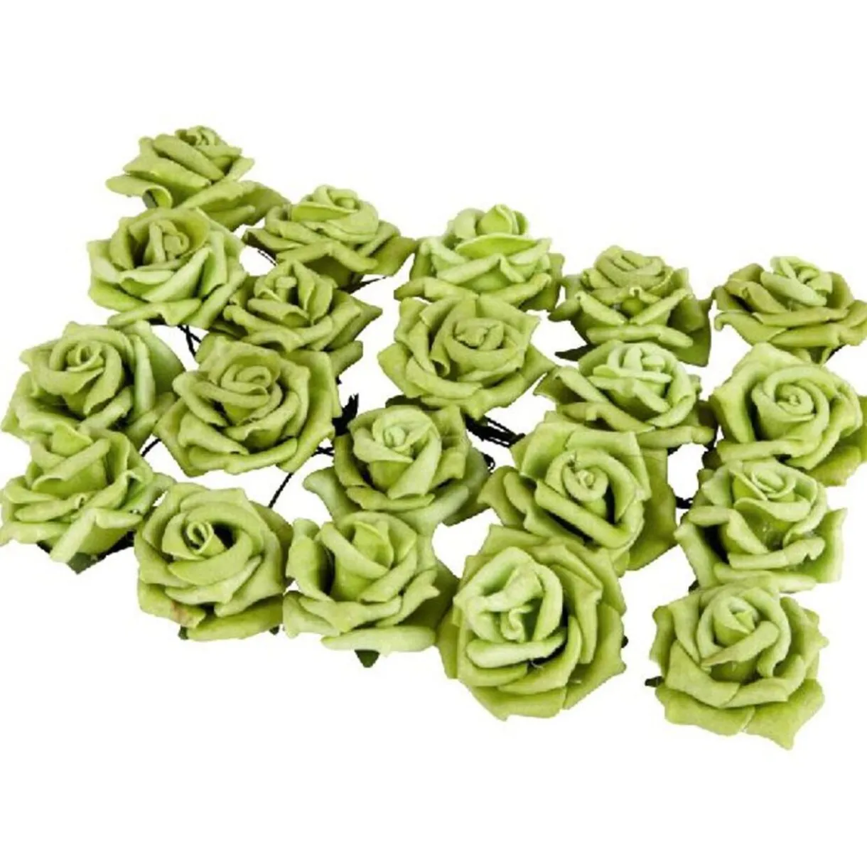20 boutons de rose Ø 2.5 cm, couleur vert, attache verte en métal.