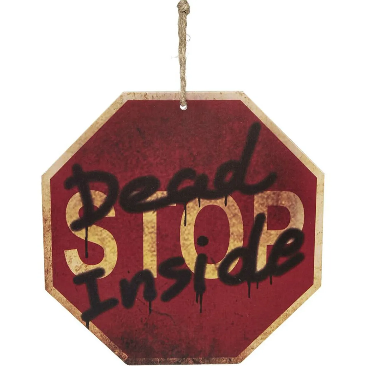 Une pancarte Halloween stop dead inside à poser contre un mur.<b