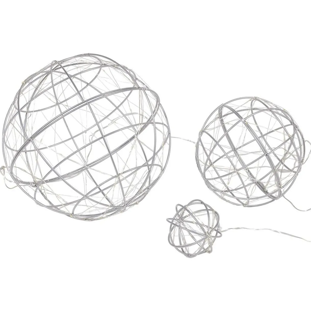 Lot de 3 boules lumineuses en métal noir, avec possibilité de les séparer pour obtenir 6 demi-cercles lumineux.