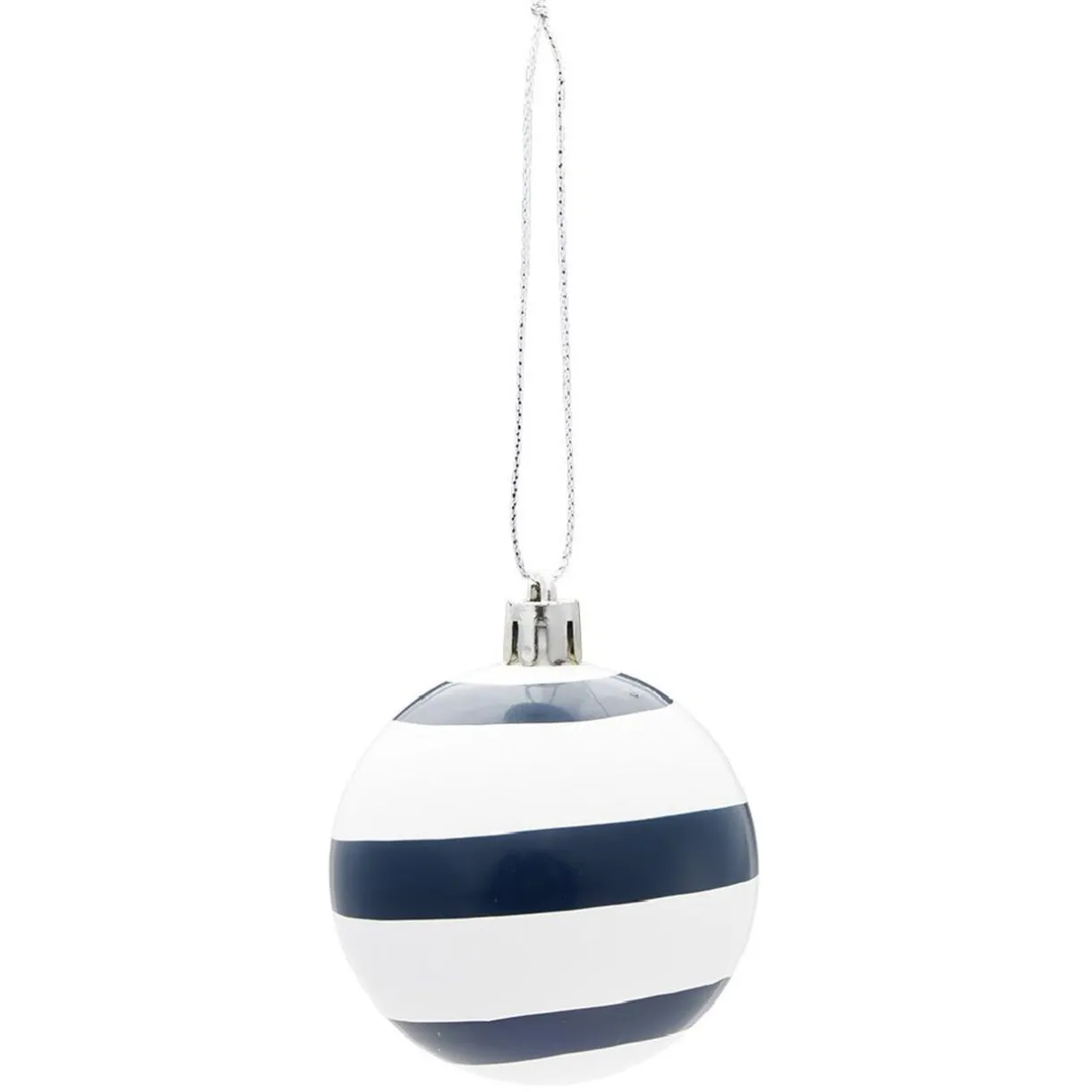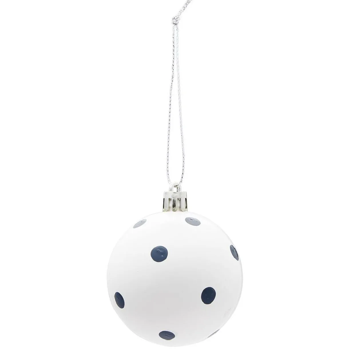 Boule de Noël blanche et bleue avec différents motifs offrant un style givré pour décorer le sapin.