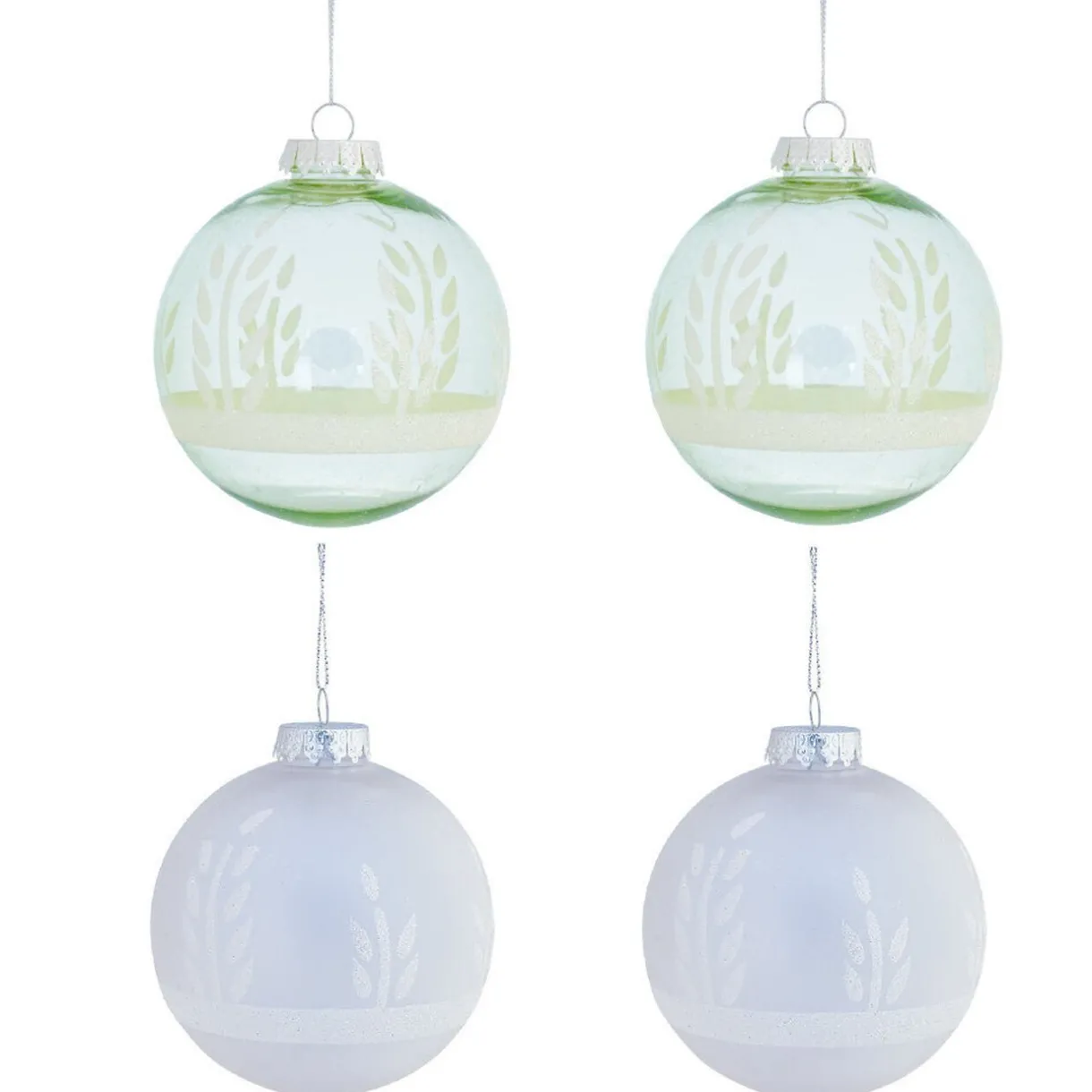 Optez pour ce lot de 4 boules de Noël au coloris vert et argenté pailleté pour compléter la décoration de votre sapin dans le style scandinave ou bien nature chic.