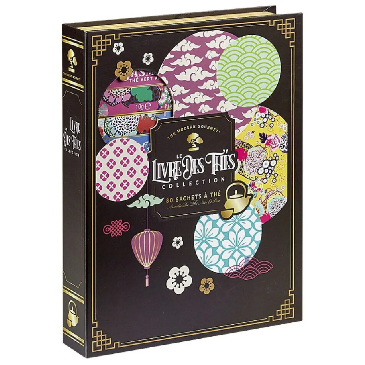 Coffret à thés en forme de livre avec 8 variétés différentes dans des bopites de 10 g chacune.