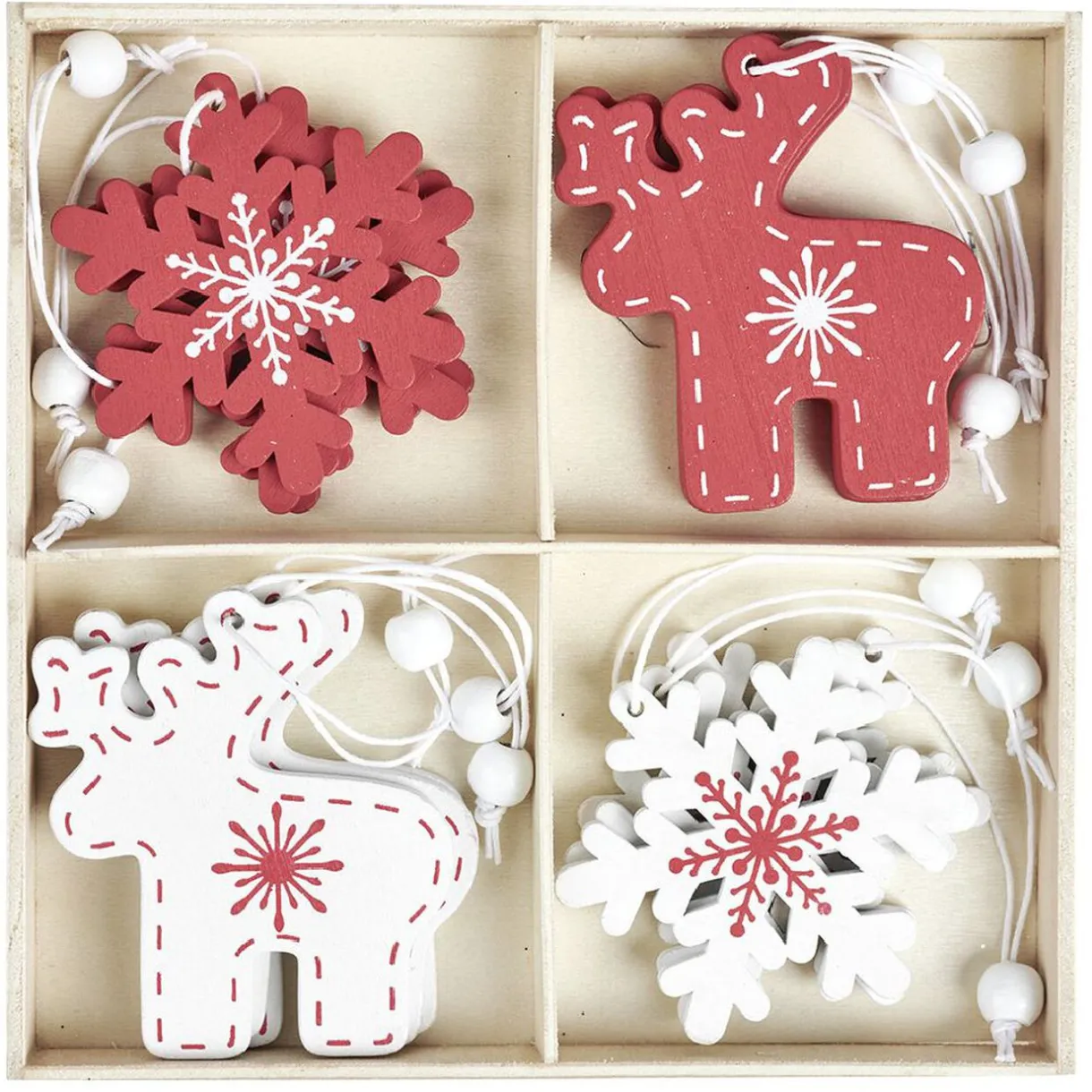 Gifi Décoration de Noël à suspendre en bois rouge et blanc x12^ Décoration Sapin
