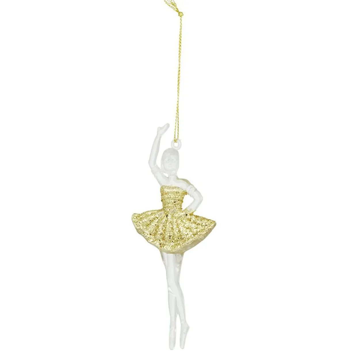 Danseuse transparente vêtue de doré et de paillettes dans 2 poses différentes, à suspendre au sapin pour une belle décoration de Noël.
