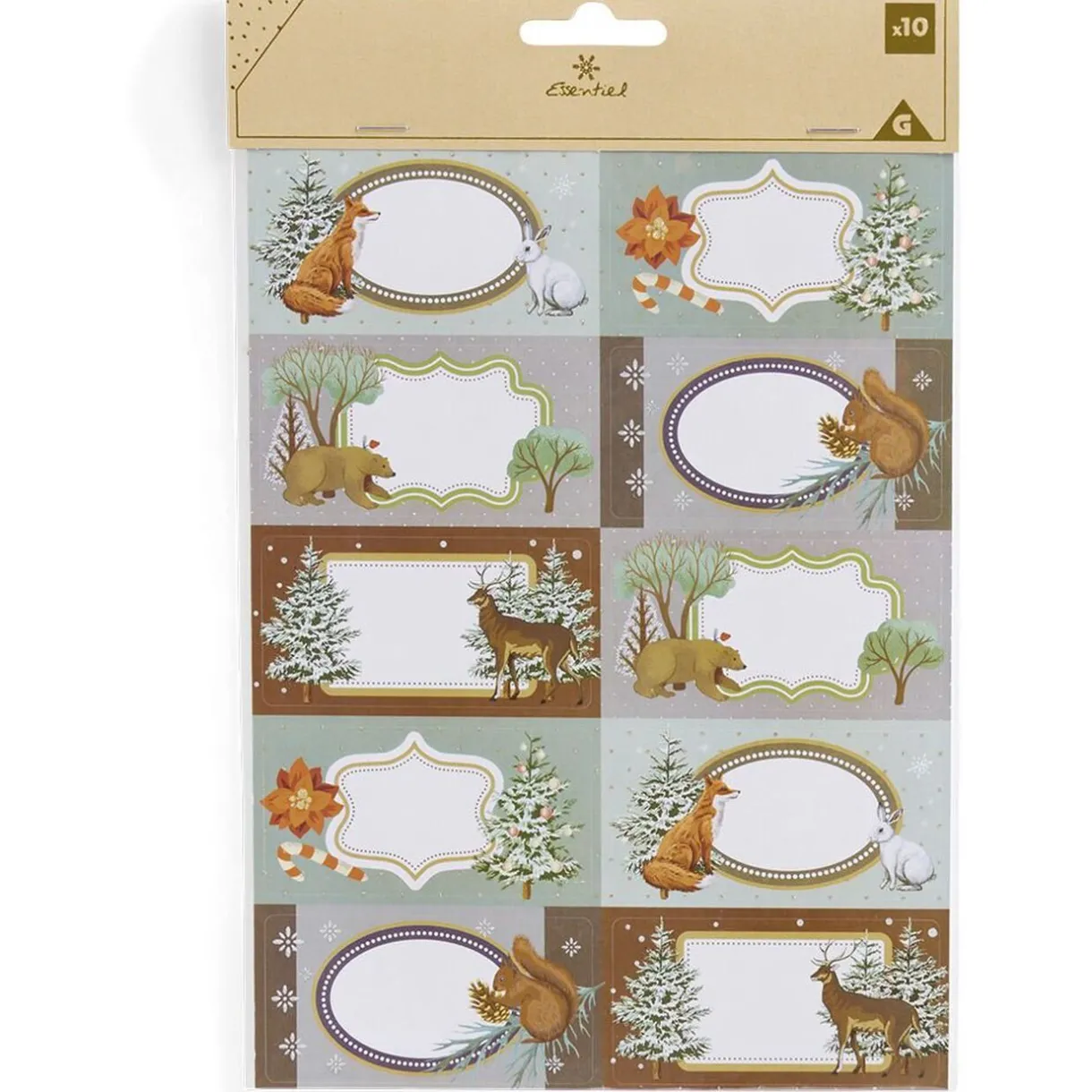 Feuille de 10 étiquettes autocollantes sur le thème de la nature, idéales pour identifier les cadeaux de Noël de chacun.