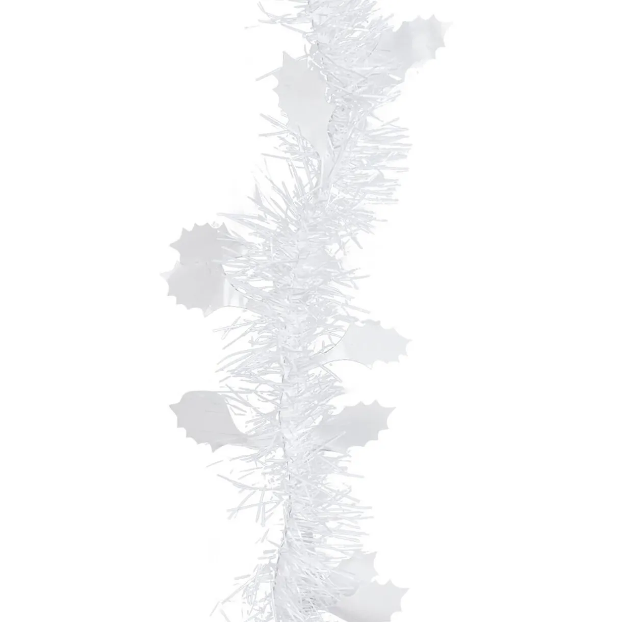 Guirlande de Noël blanche, L. 2 m, motifs feuilles, plastique.