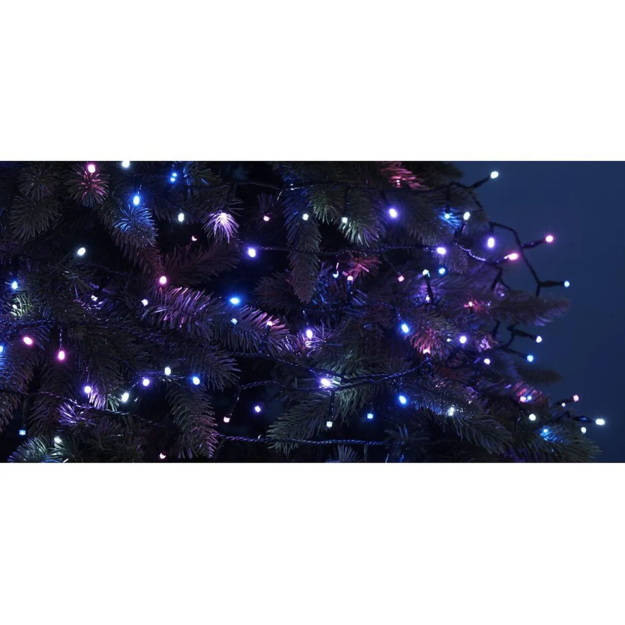 Guirlande électrique 7.95 m d’éclairage, 160 leds multicolores (rose, violet, bleu et blanc).