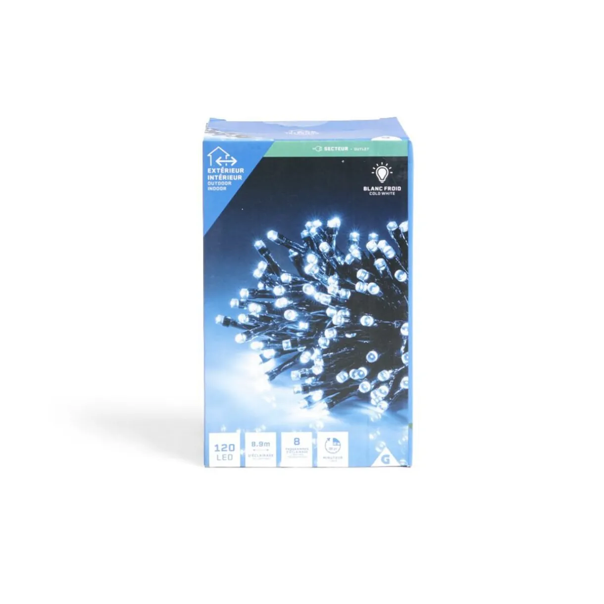Cette guirlande lumineuse dotée de 120 LED blanc froid est parfaite pour embellir votre espace extérieur comme intérieur.
