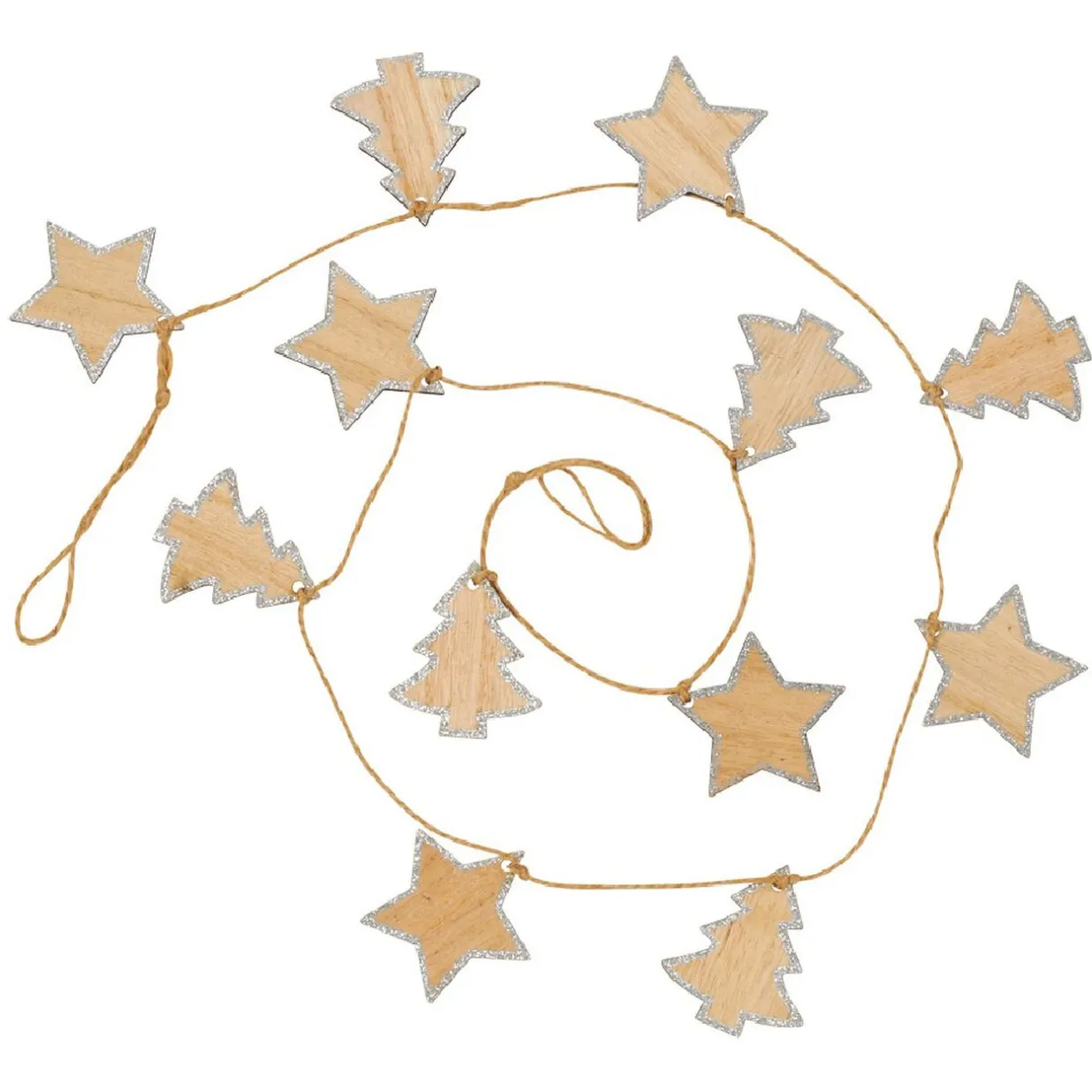 Customisez votre arbre de Noël en le décorant avec cette guirlande en bois. Conçue dans un design simple, elle se compose de plusieurs sapins ou d’étoiles, reliés par une corde. Son aspect rustique apporte une touche naturelle et originale à votre décoration. Cette guirlande se marie parfaitement avec les autres ornements du sapin, que vous optiez pour une déco traditionnelle ou un style moderne.