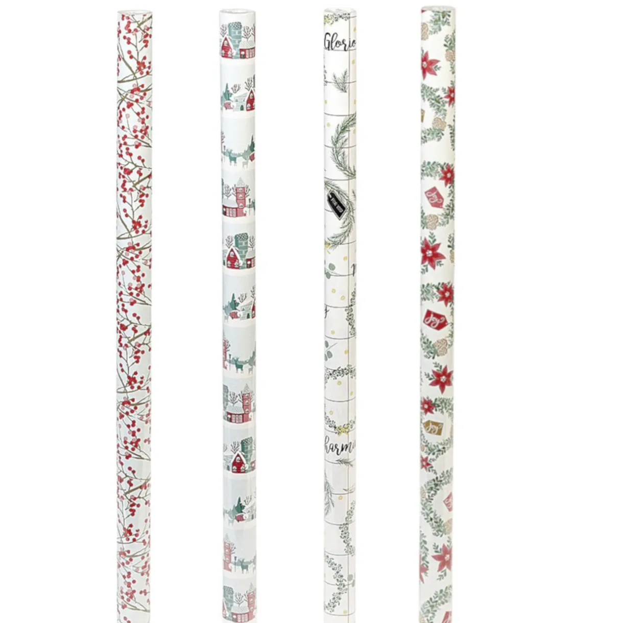 Pour emballer vos cadeaux de Noël, optez pour ce kit complet composé de 4 rouleaux de papier, 7 noeuds et 2 bolducs.