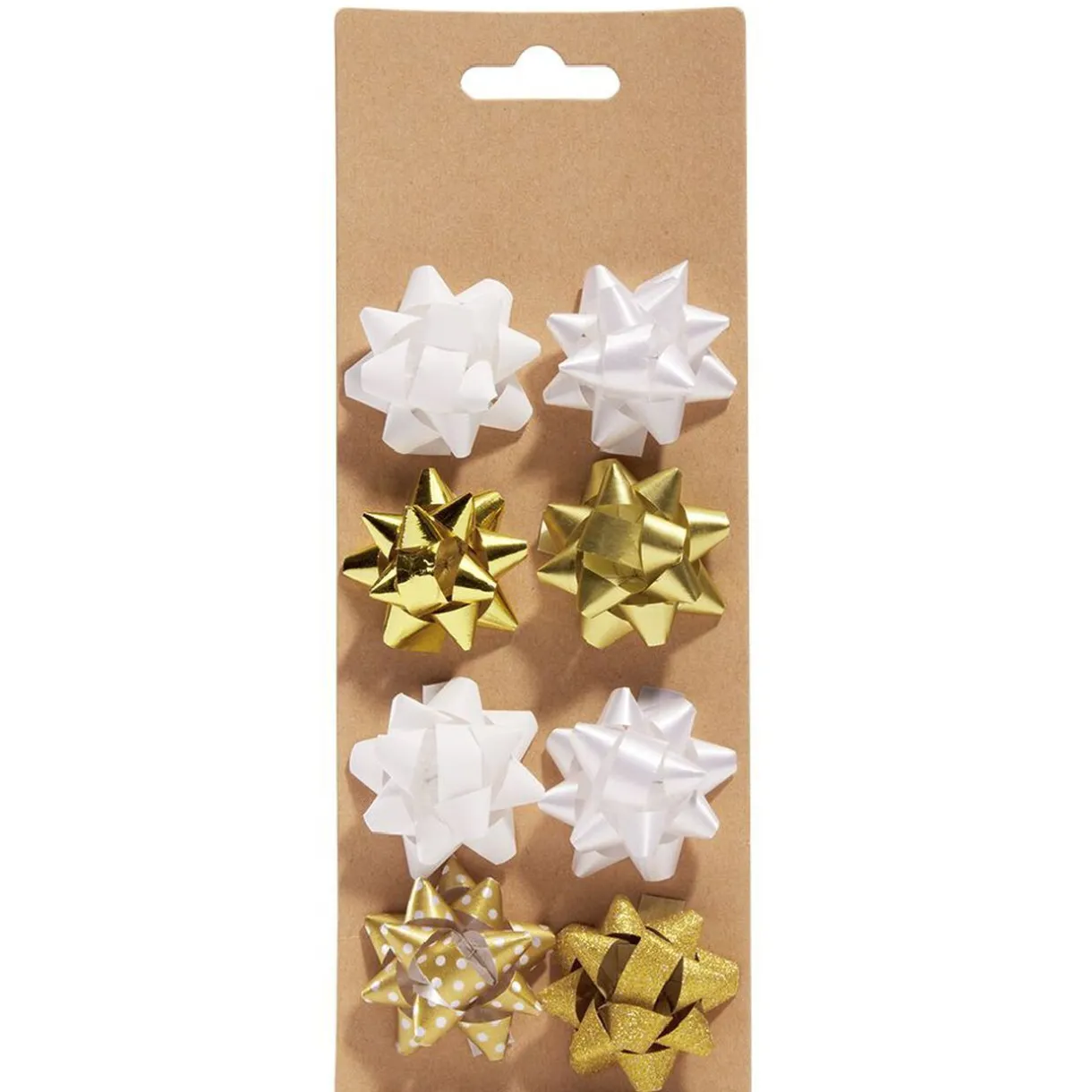Lot de 8 noeuds en bolduc blanc et doré, indispensable pour fignoler vos cadeaux de Noël avec une touche de style et de magie.