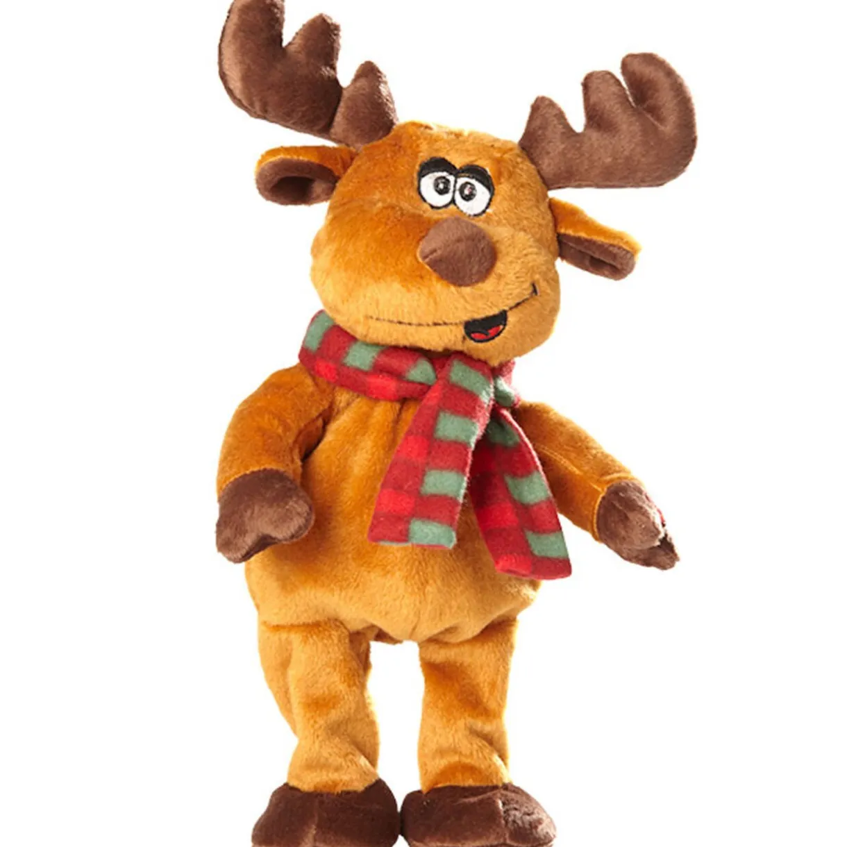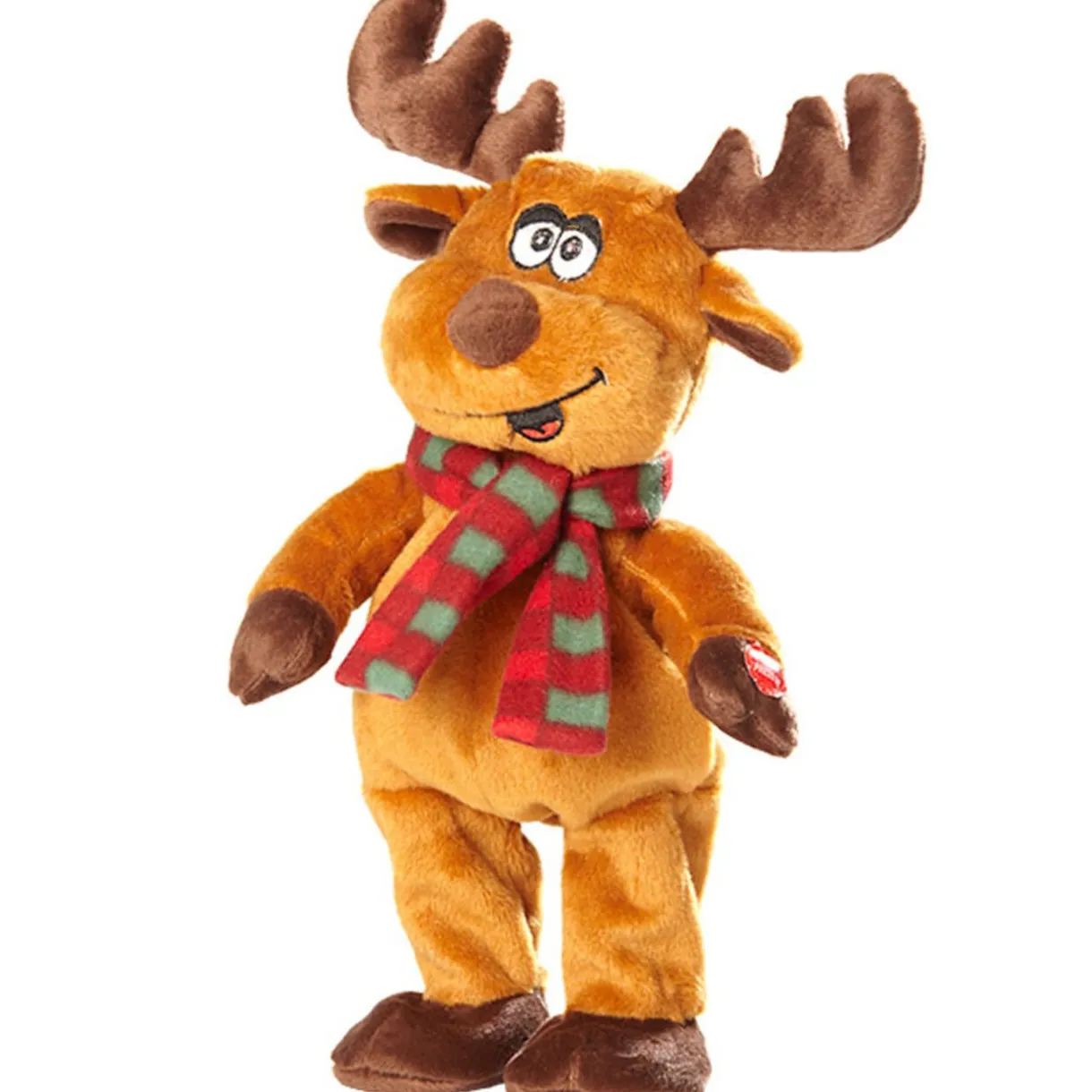 Renne animé musical, dim. 25x17xh.38 cm, polyester. Fonctionne avec 3 piles LR06 fournies..