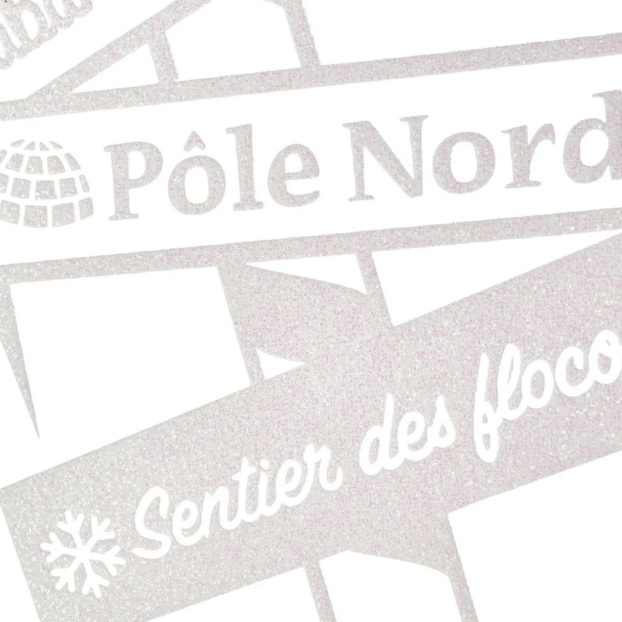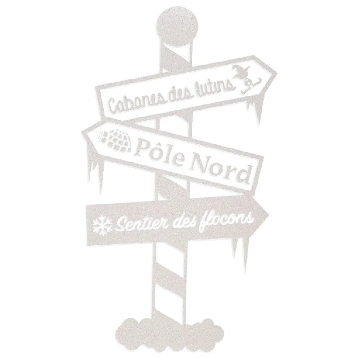 Décorez votre fenêtre à l’occasion de Noël avec ce sticker blanc représentant 3 panneaux inscrits :