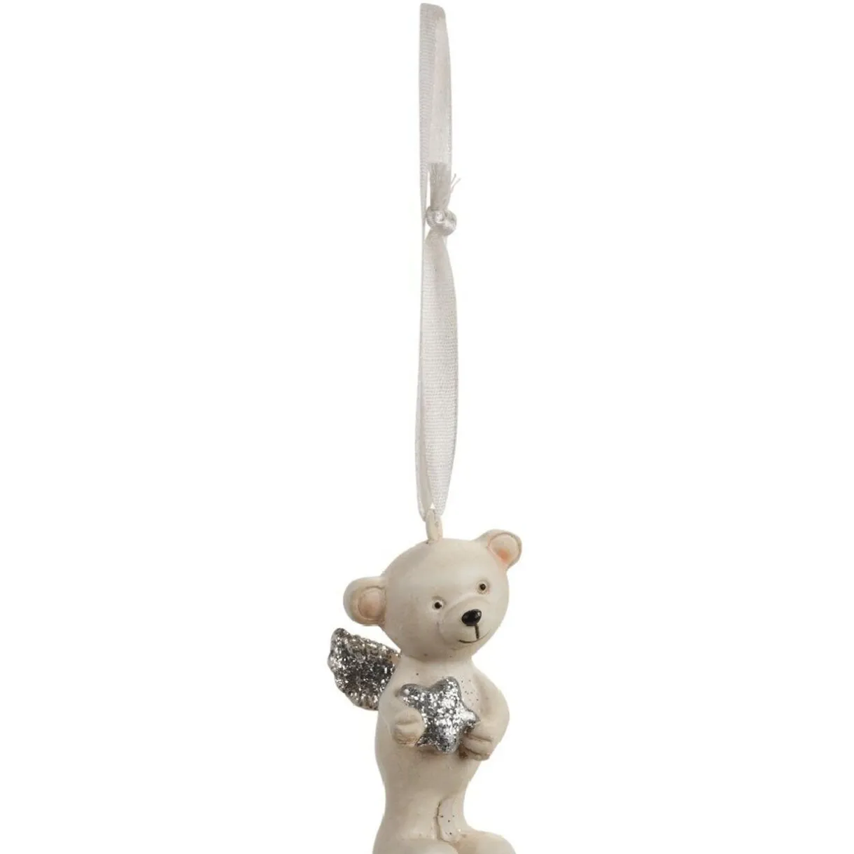 Mignon petit ourson blanc debout à suspendre pour un sapin au charme attendrissant.