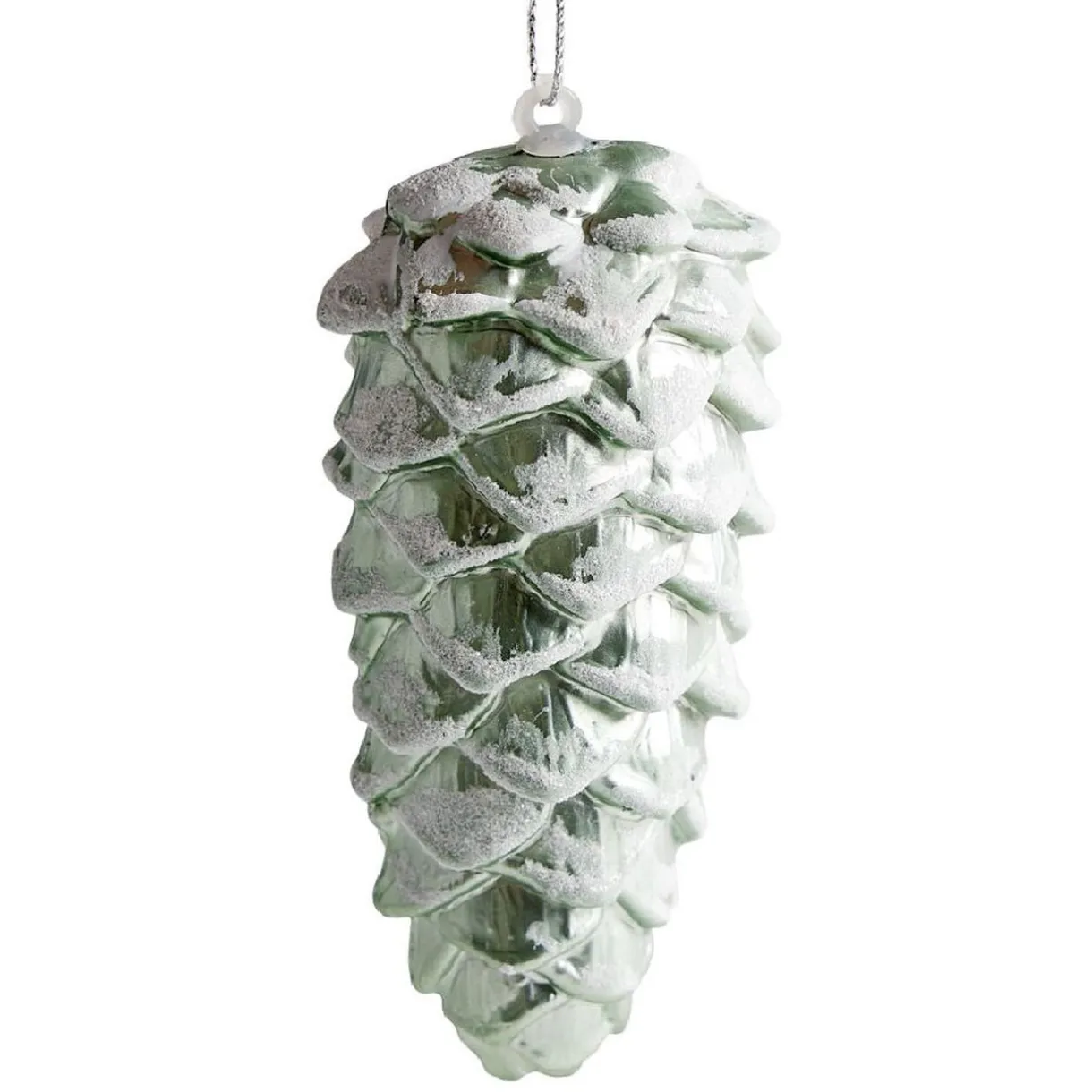 Pomme de pin givréebleu avec effet neige, idéale pour agrémenter votre décoration de sapin ou celle de votre intérieur.