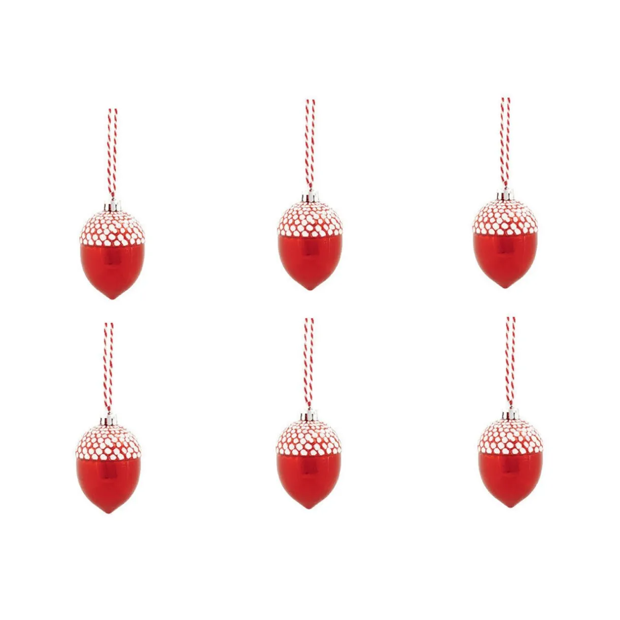 Si vous aimez le style de décoration originale, craquez pour cette suspension de Noël en forme de pomme de pin. Ce lot de 6 pommes de pin habille élégamment votre sapin et rehausse toute sa beauté. Conçue avec une courbe délicate, chaque pomme de pin en plastique est colorée en rouge et en blanc, avec un fil d’attache assorti pour pouvoir lasuspendre sans difficulté.