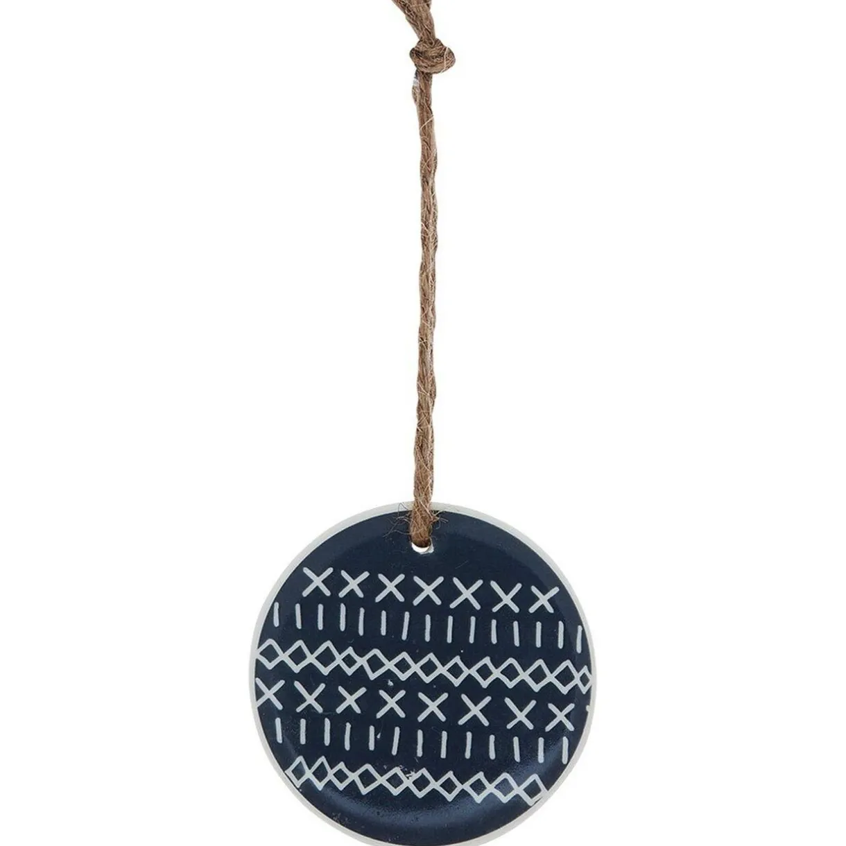 Suspension de Noël de forme ronde en céramique peint esprit scandinave et nature.