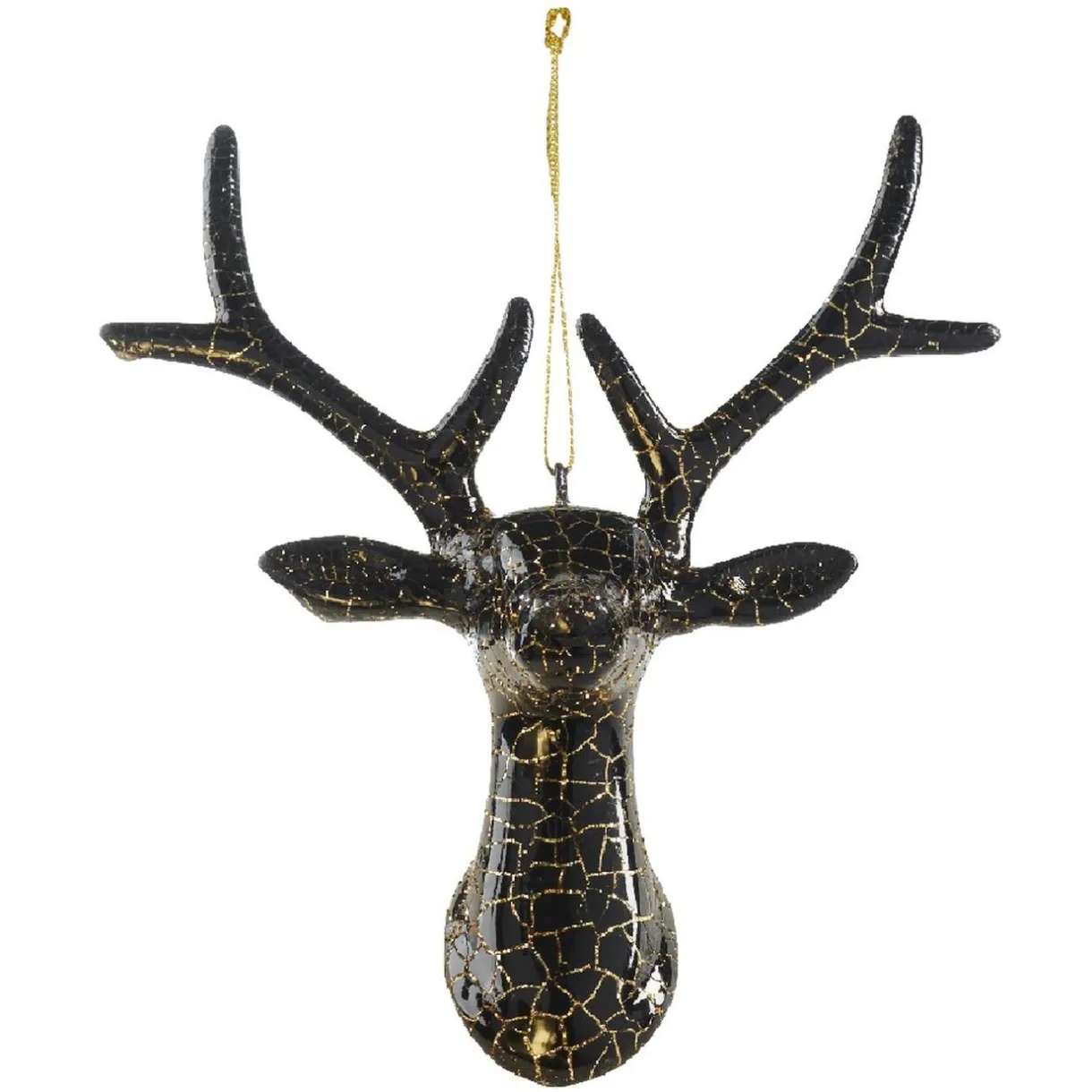 Pour fêter Noël dans la joie, faites-vous plaisir en décorant votre sapin avec cette tête de renne à suspendre. Sa couleur noire et son aspect craquelé aux rayures dorées lui confèrent un look élégant.