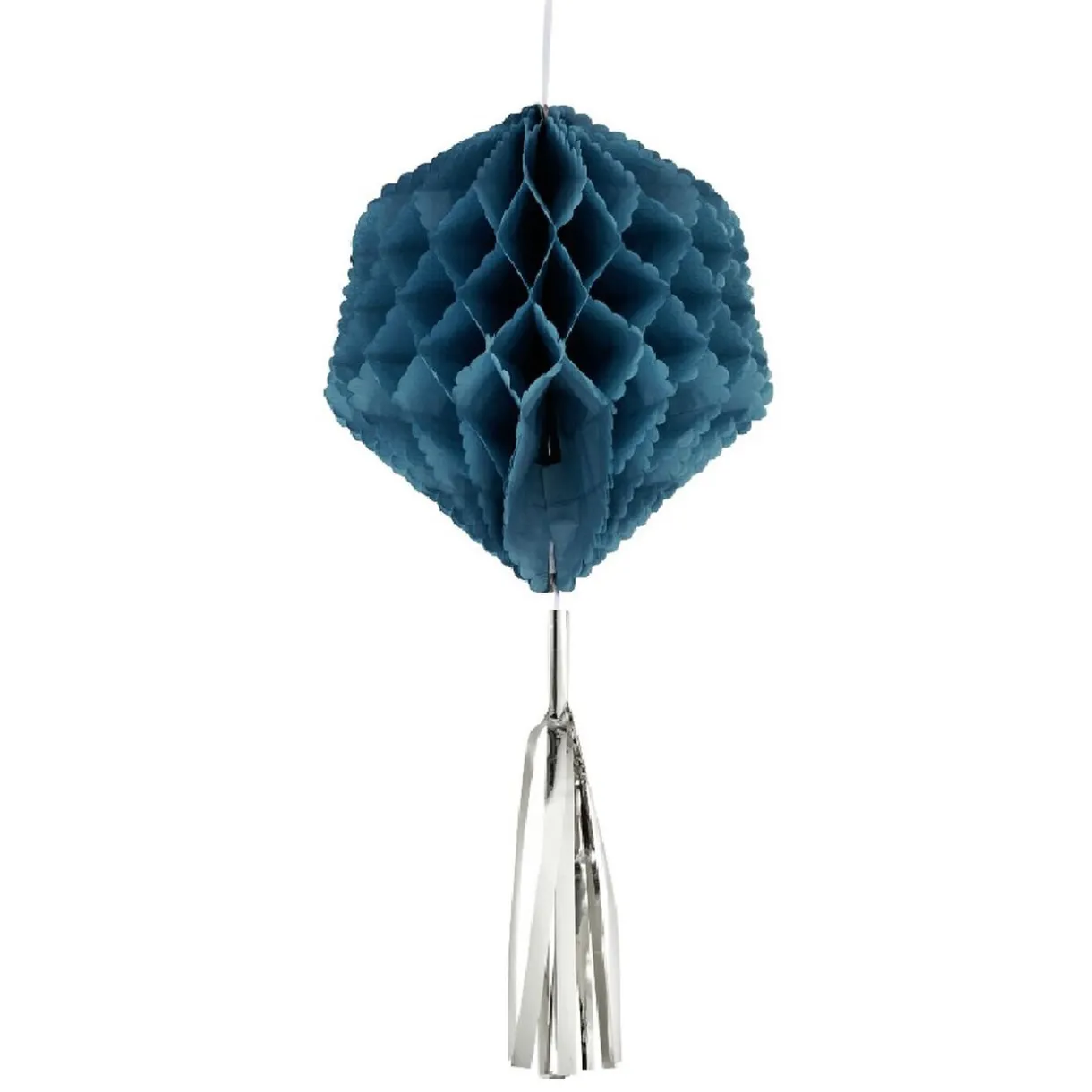 Lot de 3 suspensions en papier bleu de forme géométrique pour décorer vos soirées et évènements.
