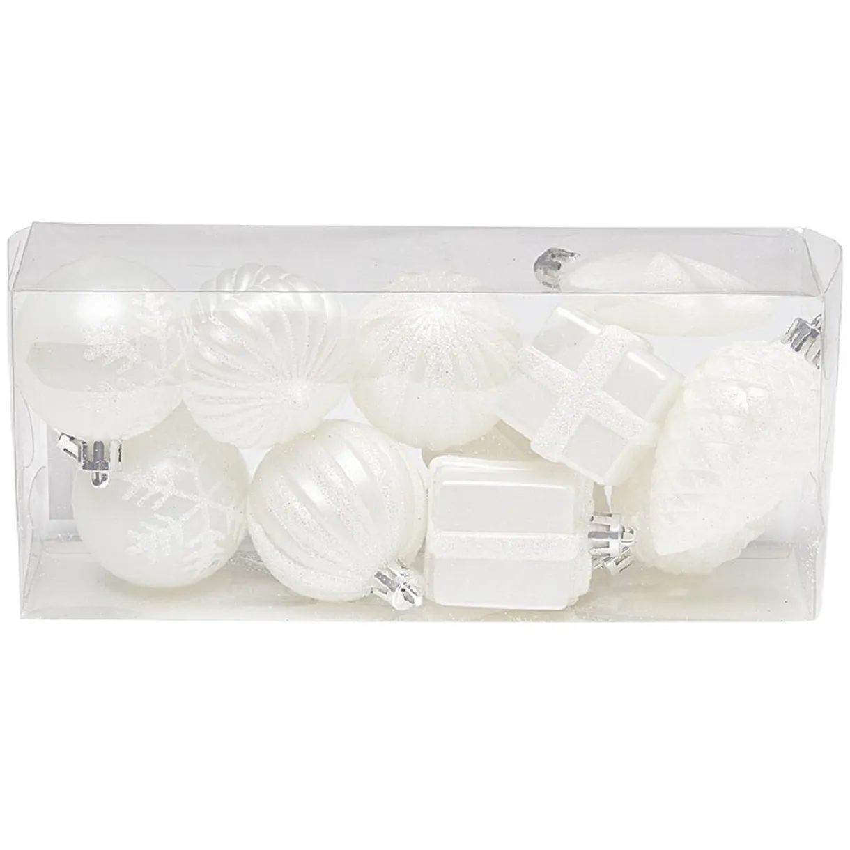 Sublimez votre sapin par la magie du blanc avec ce set de 12 décorations à suspendre.