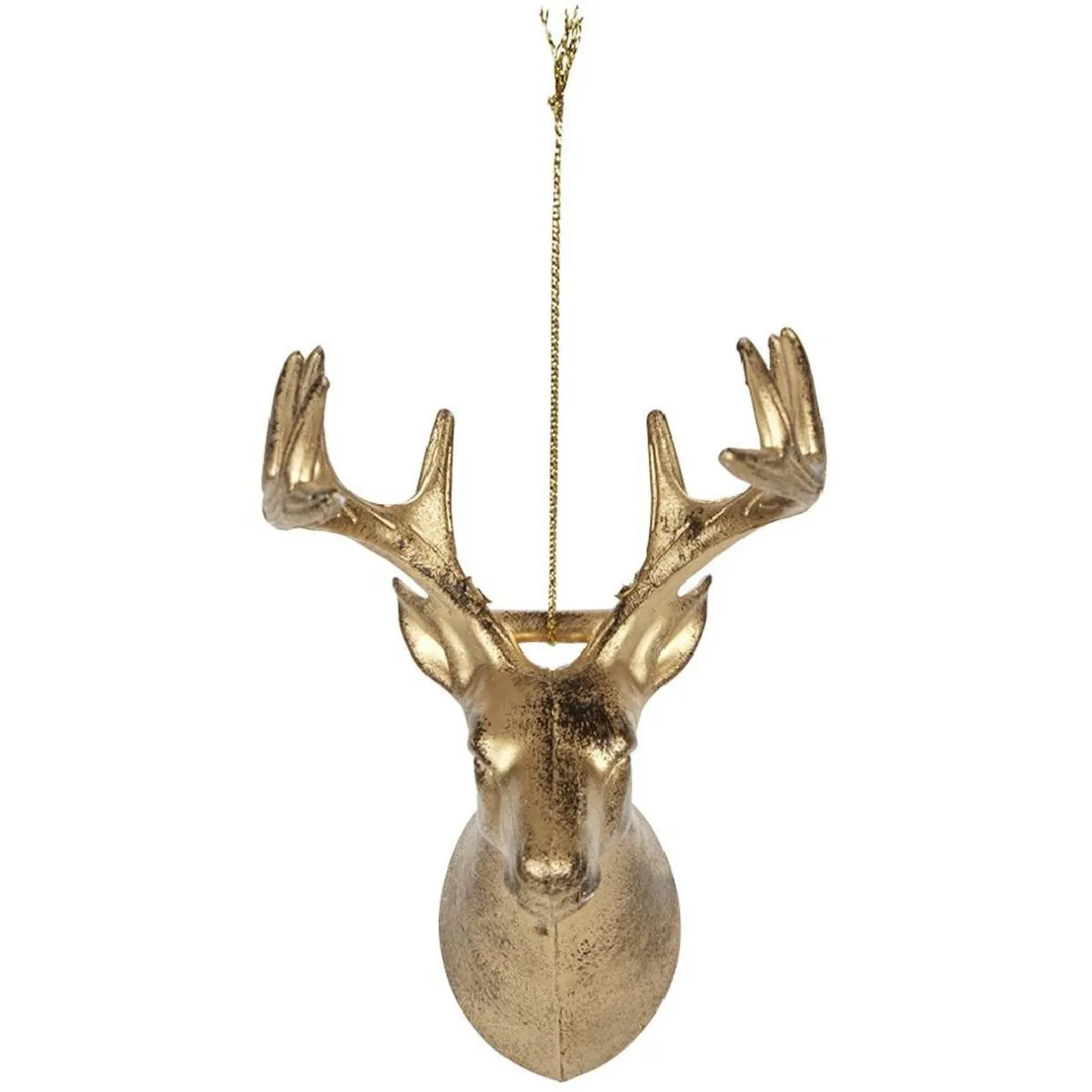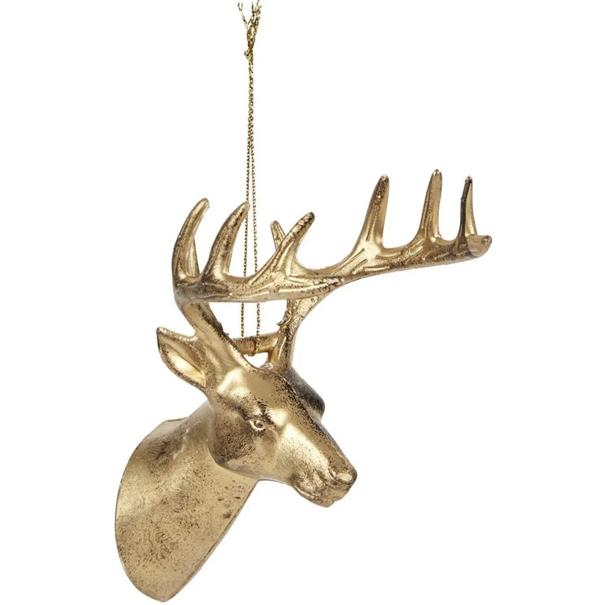 Tête de renne dorée à suspendre au sapin pour apporter une note vintage à votre décoration de Noël.