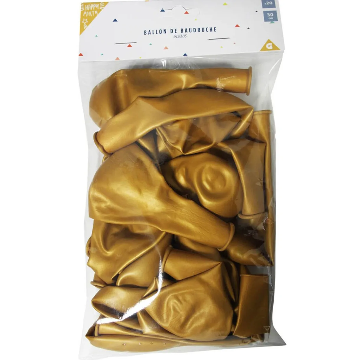 Lot de 20 ballons doré en latex pour apporter une décoration festive à vos soirées.