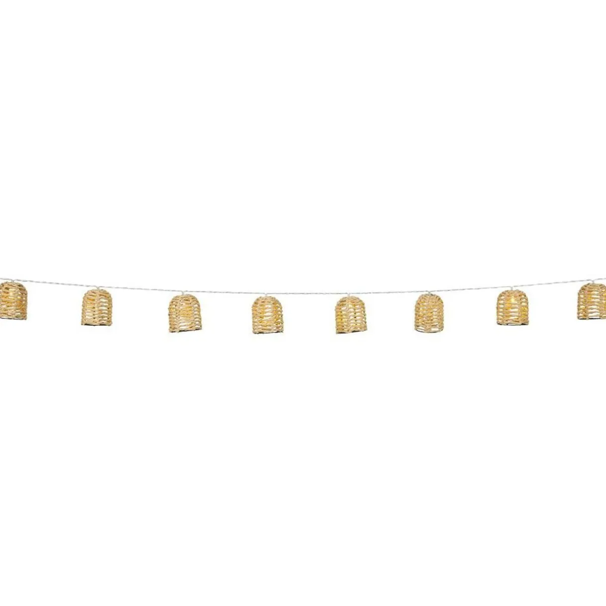 Cette guirlande composé de 10 boules façon abat-jour effet rotin tressé est idéale pour éclairer votre espace avec une touche chaleureuse et naturelle.