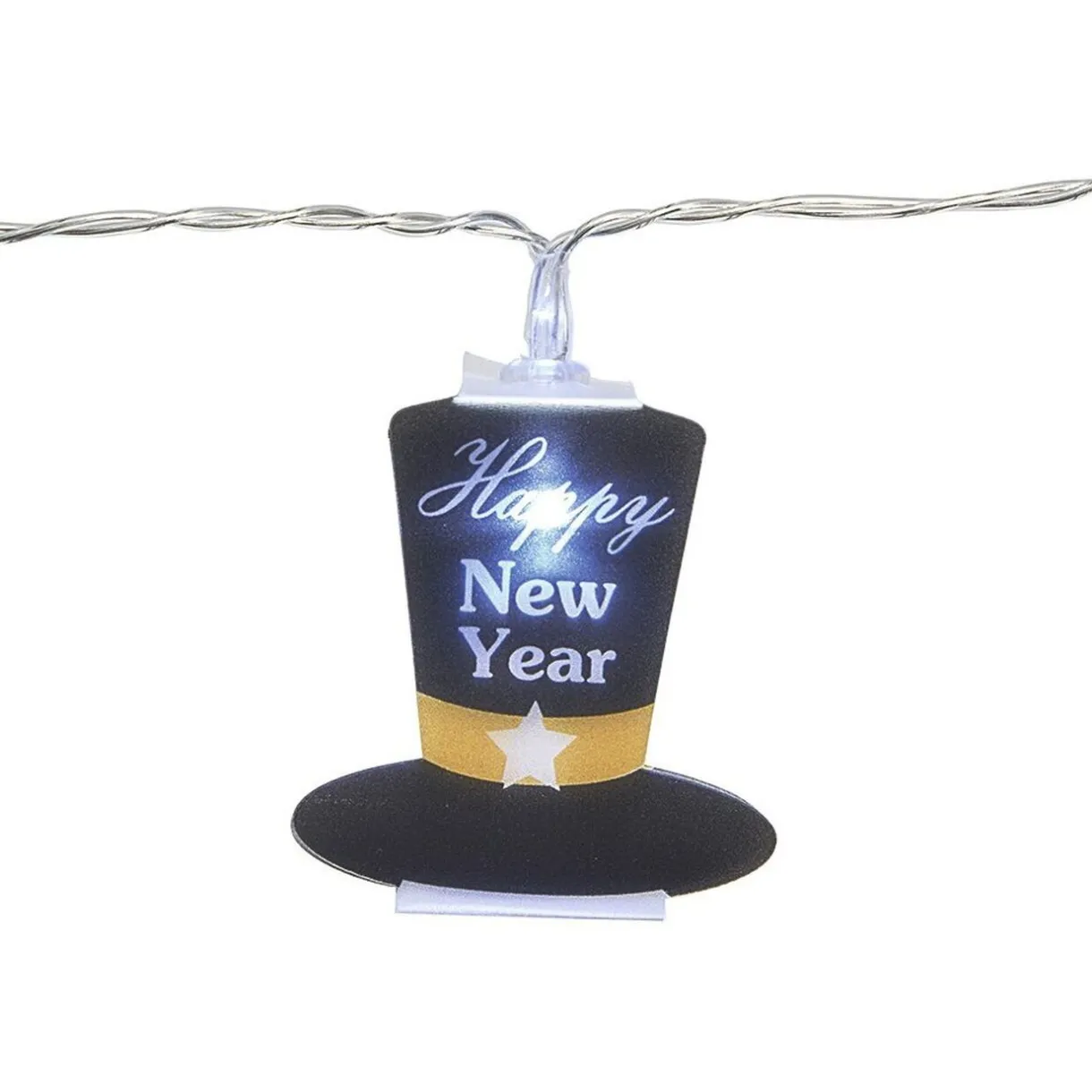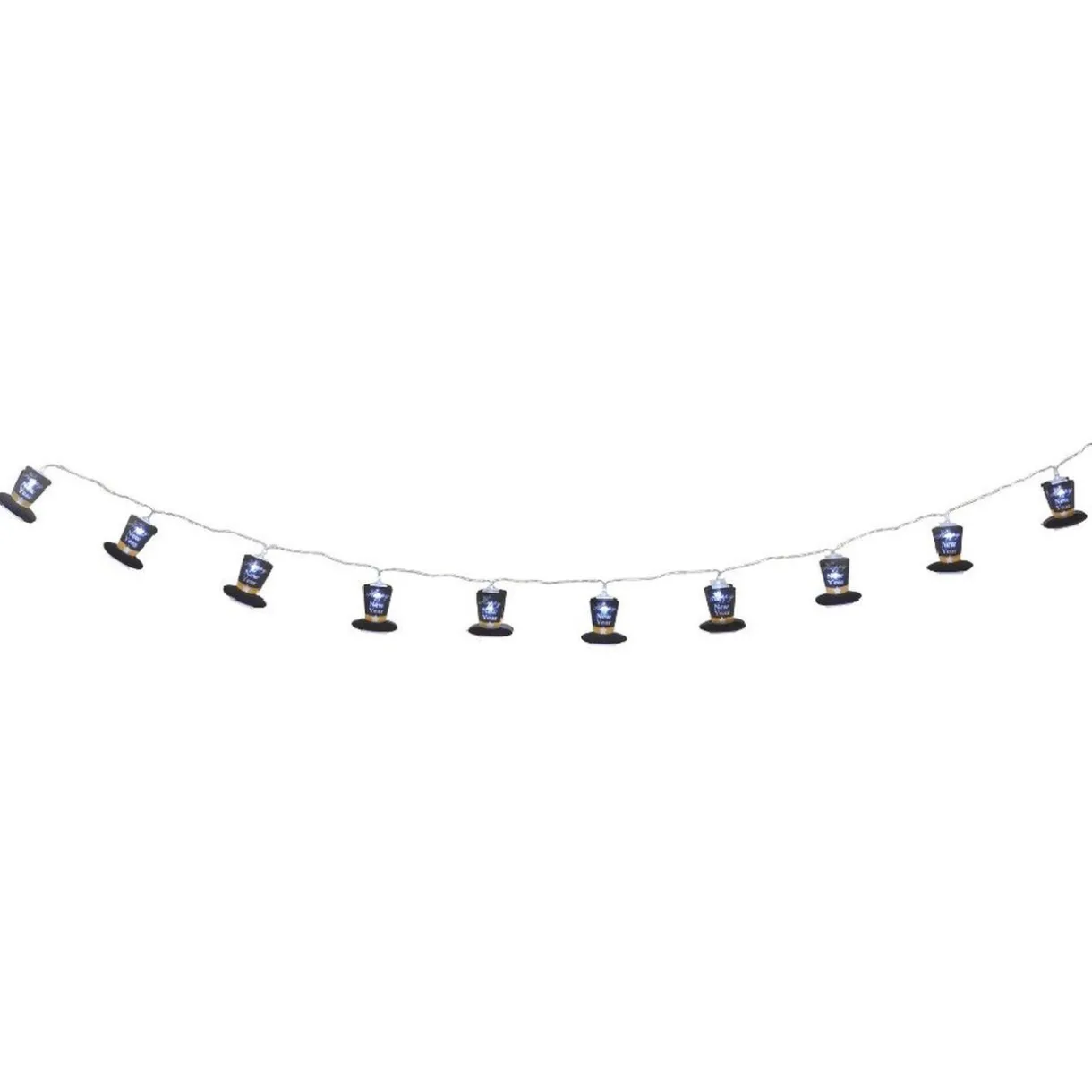Cette guirlande électrique de 10 chapeaux noirs avec inscription « Happy New Year » trouvera sa place dans votre intérieur pour le réveillon du nouvel an.Épatez vos invités et mettez l’ambiance pour cette grande fête de fin d’année !