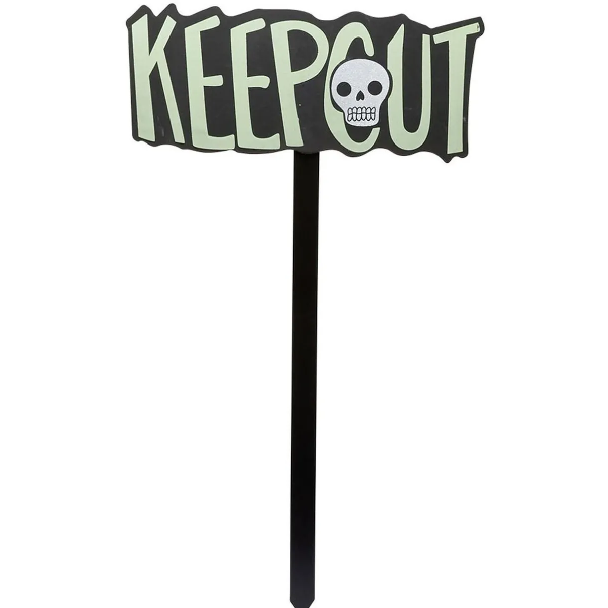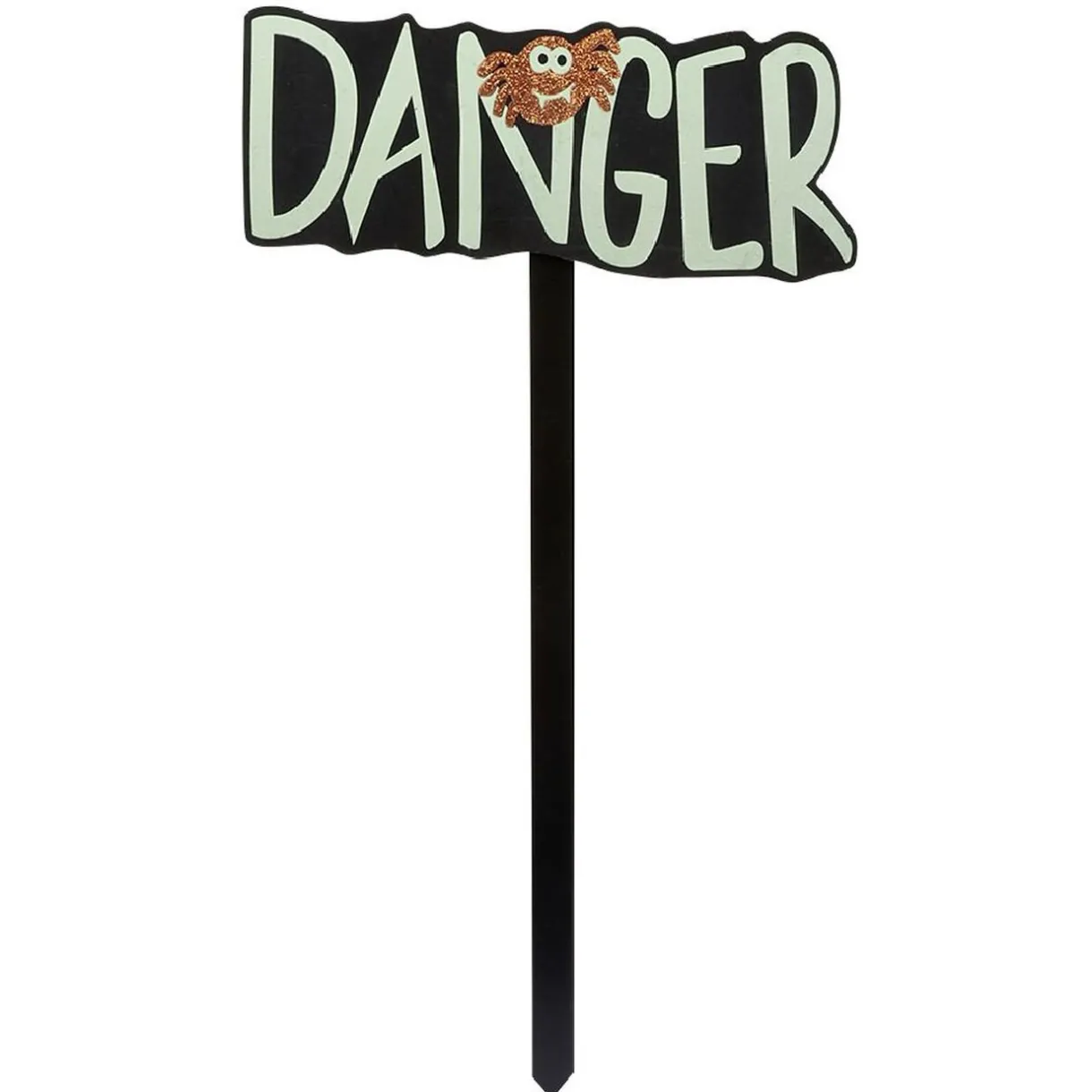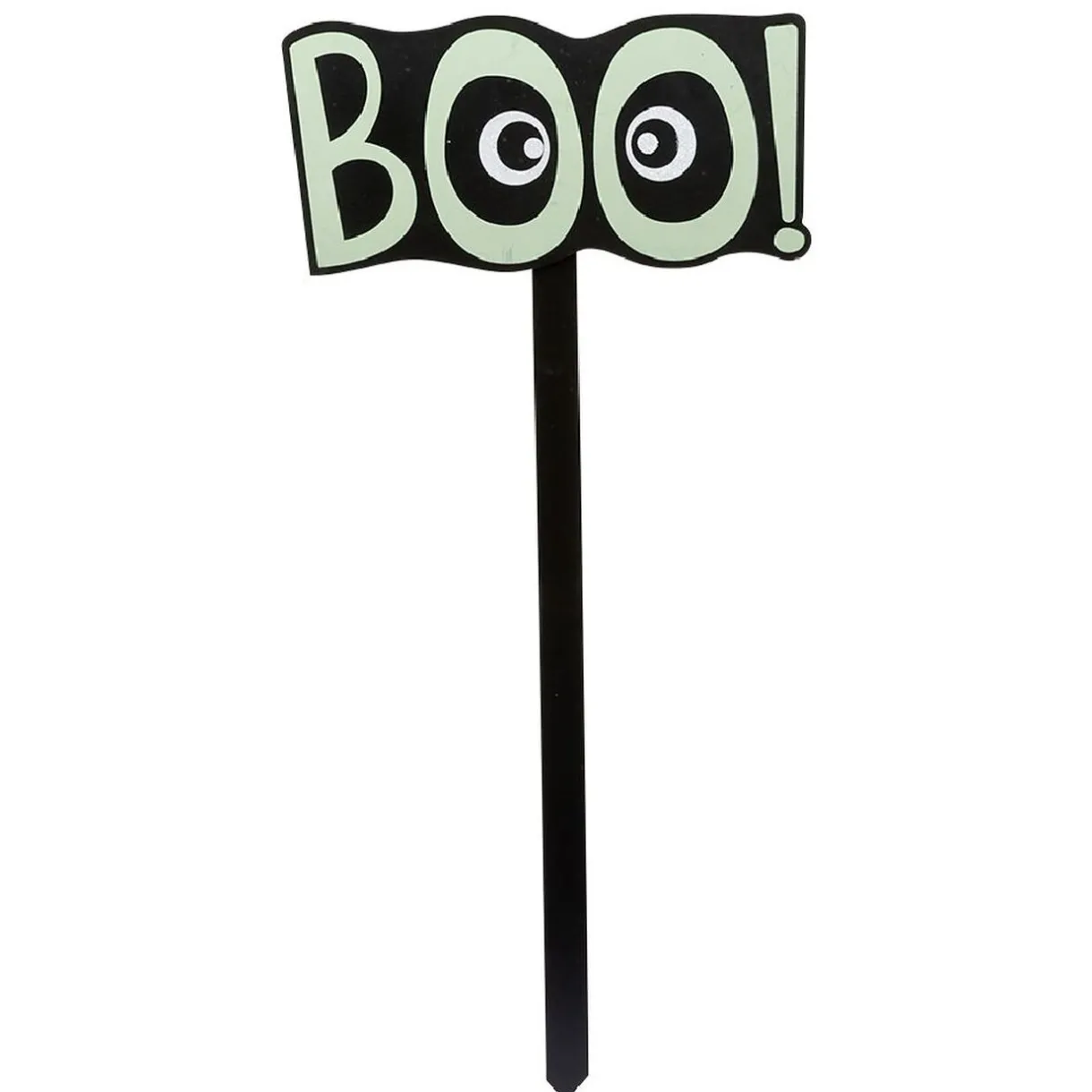 Une pancarte boo! danger keep out en bois à planter dans votre jardin pour Halloween.<b