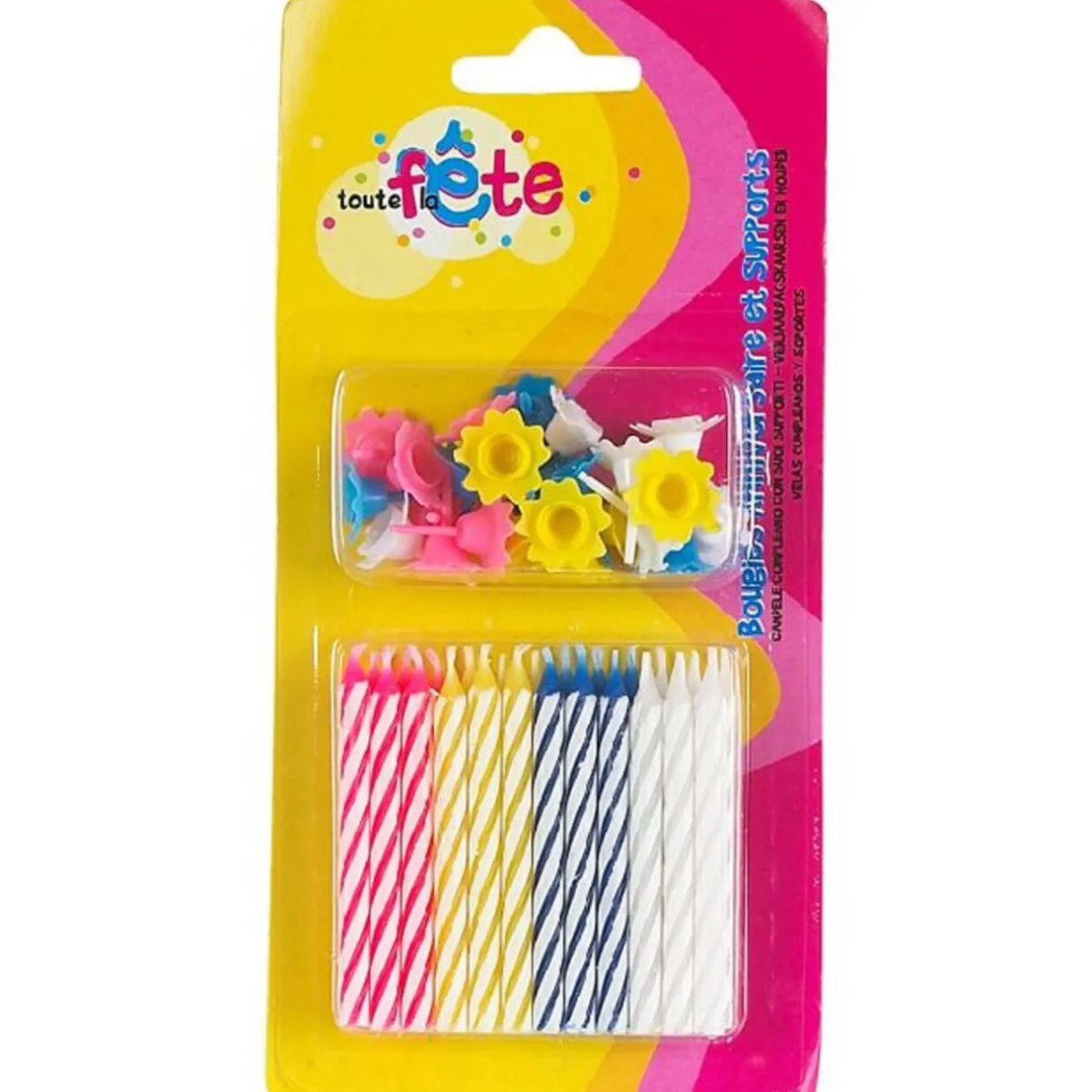 24 bougies anniversaire, h. 6.3 cm, supports inclus.