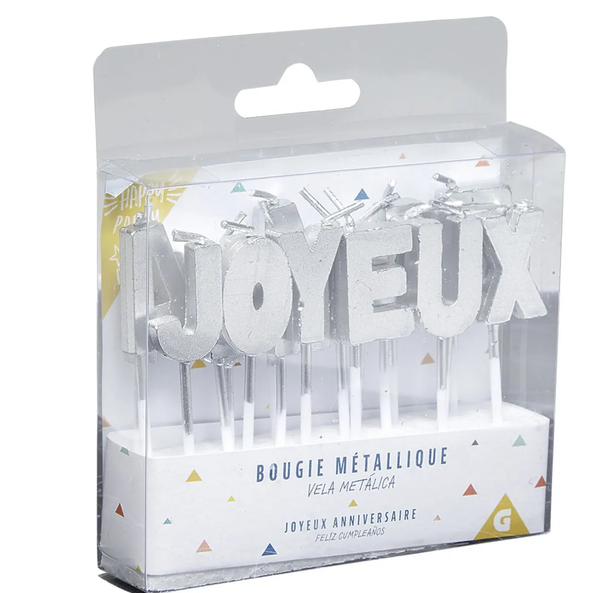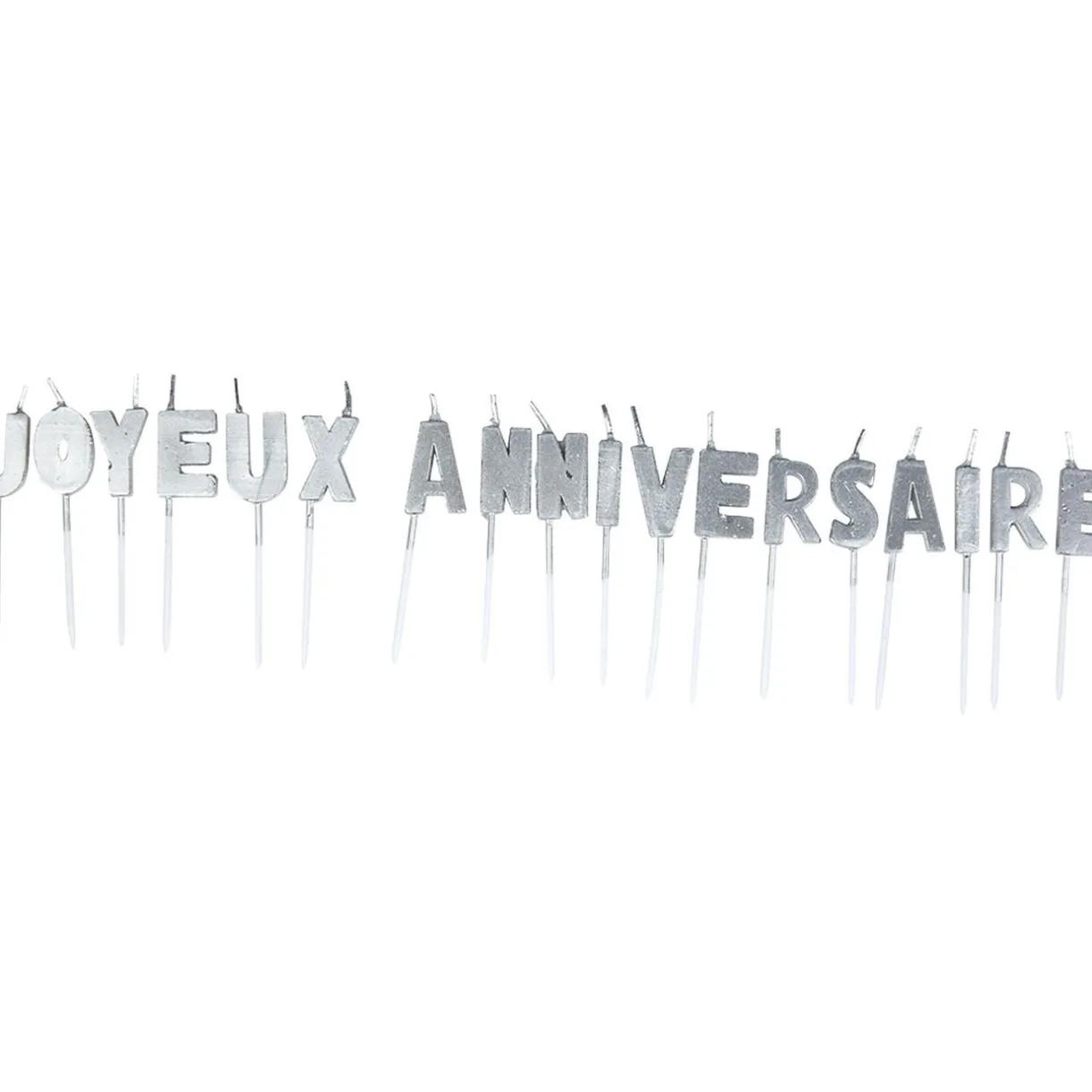 Bougies « Joyeux anniversaire » de couleur argenté.