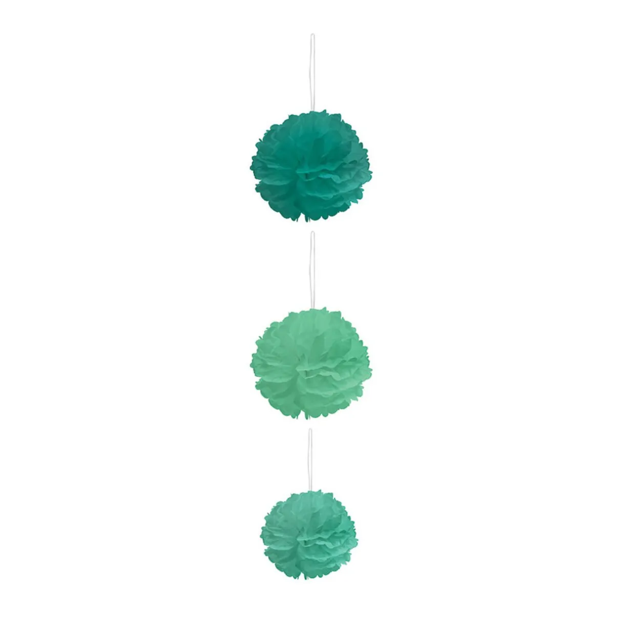 Suspension composée de 3 boules en papier effet chiffon de couleur verte.