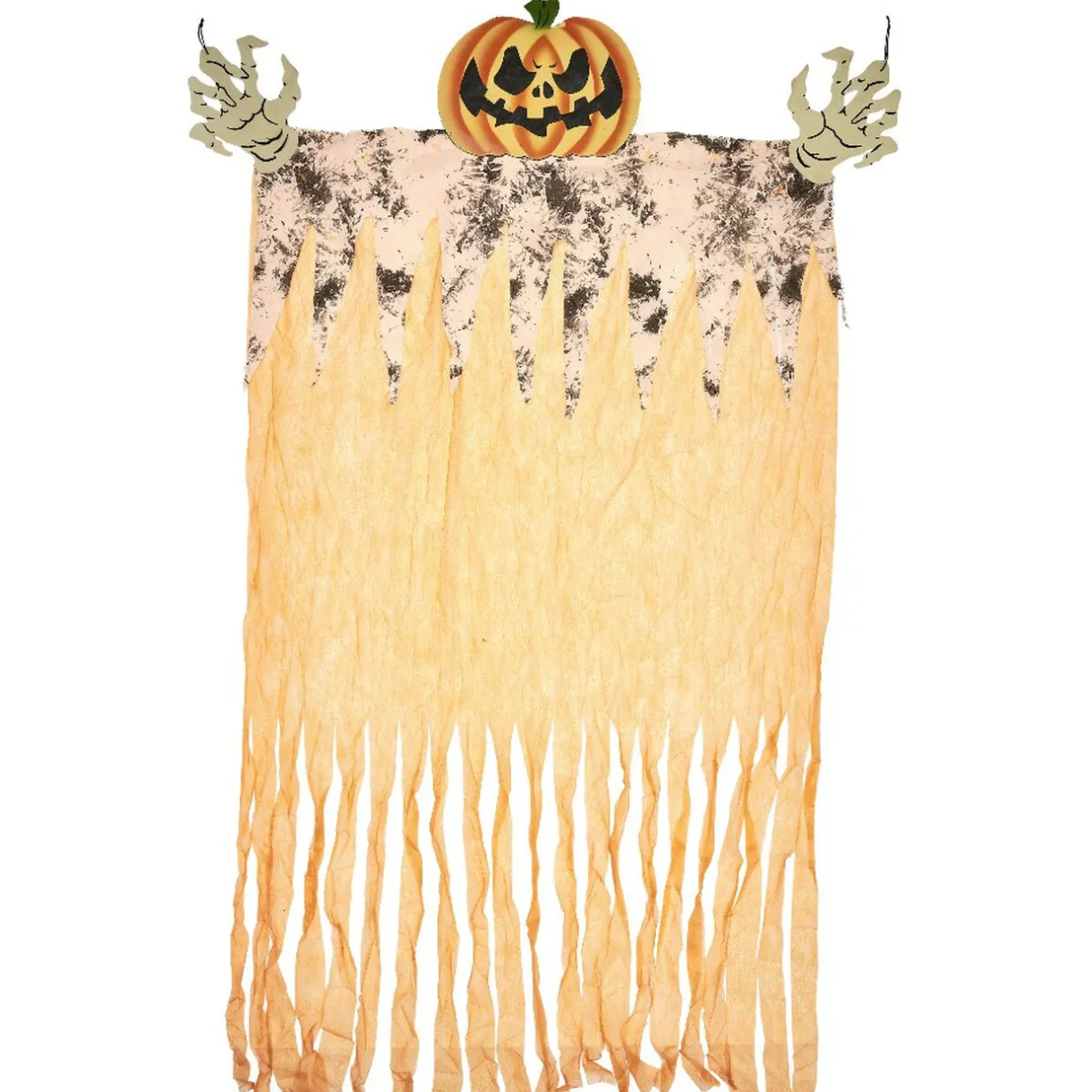 Rideau orange à tête de citrouille, idéal en décoration d’ambiance pour Halloween.