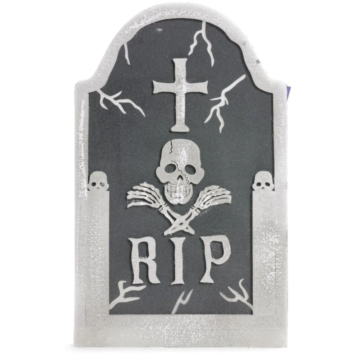 Arborant l’inscription « RIP », cette décoration funèbre ajoute une touche sinistre et authentique à votre fête.