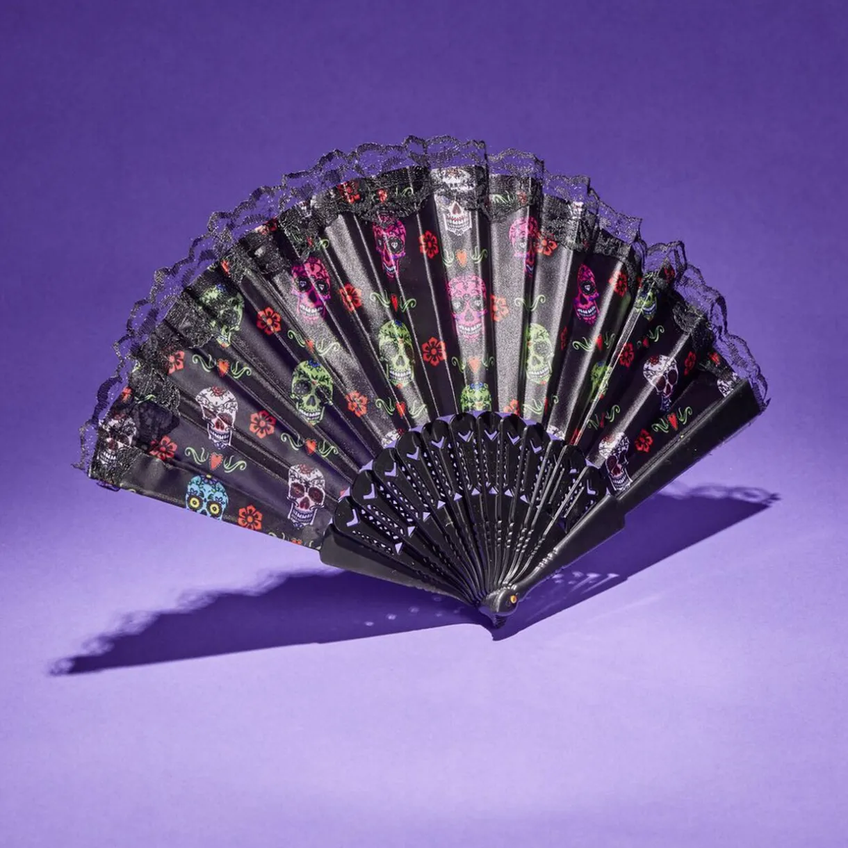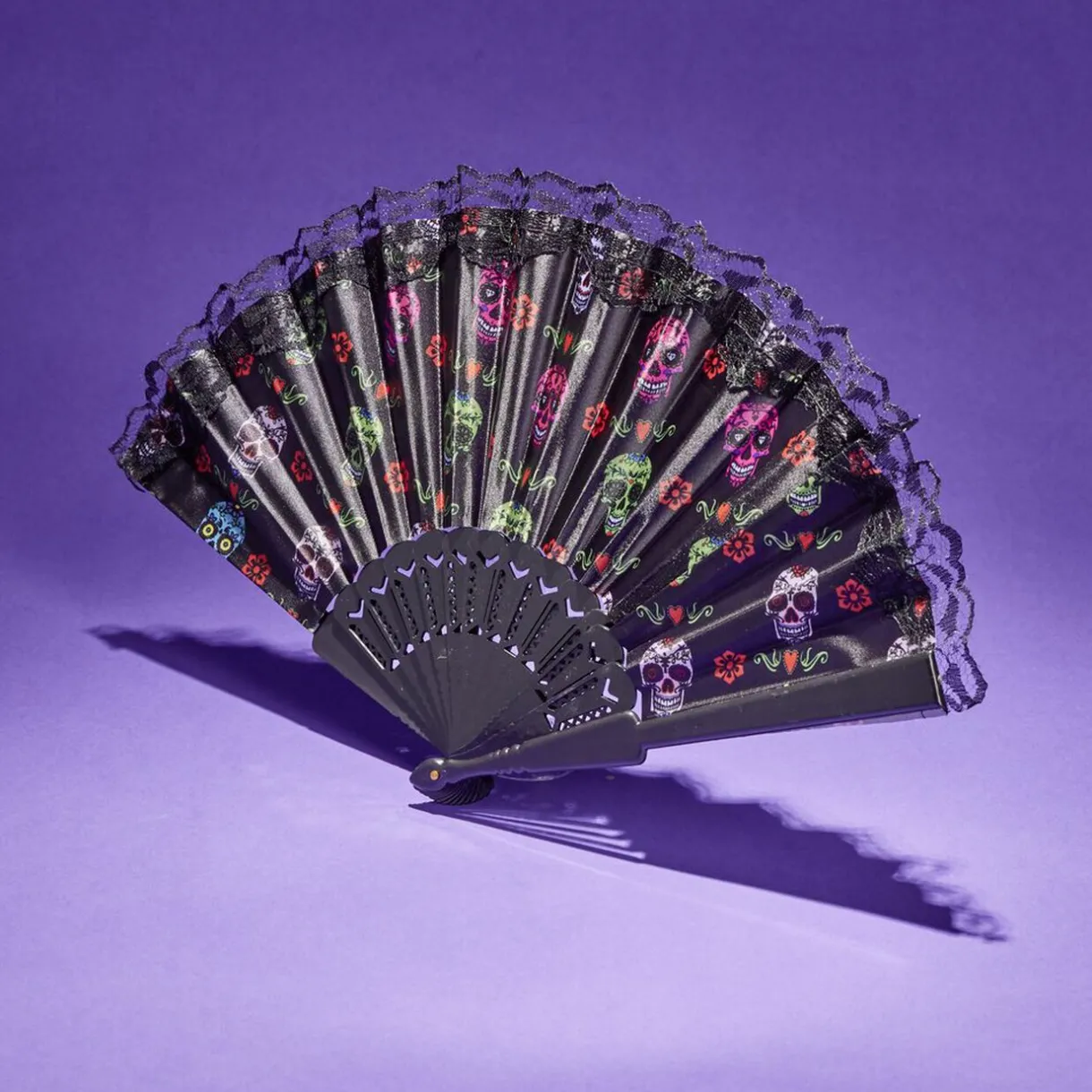 Outlet Gifi Éventail Halloween pliant tête de mort mexicaine 43x23cm