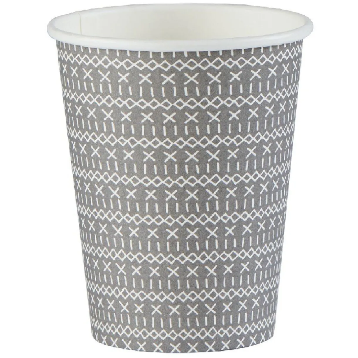 Lot de 10 gobelets jetables motifs crochets et croix blancs et gris, d’une contenance de 25 cl. N’hésitez pas à compléter votre table avec les assiettes jetables assorties, réf. 506044 !