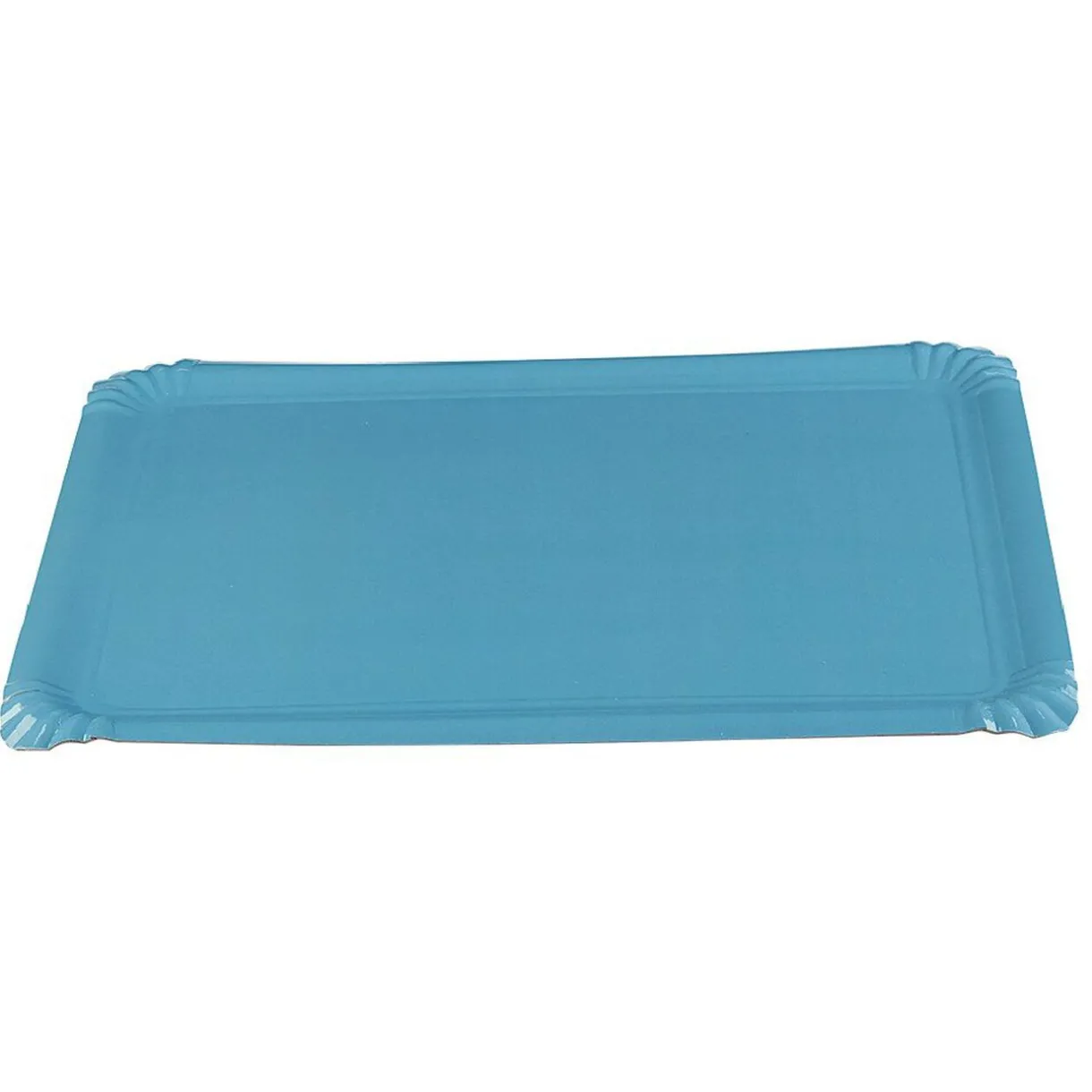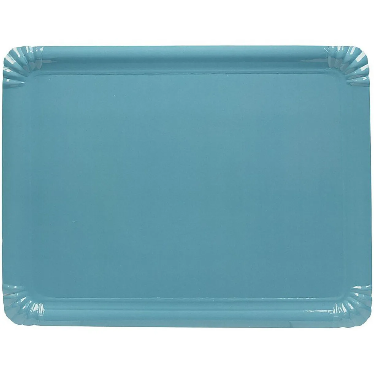 Soyez toujours prêts à faire passer des apéritifs et amuses-bouches entre vos invités grâce à ces plateaux en carton turquoise.