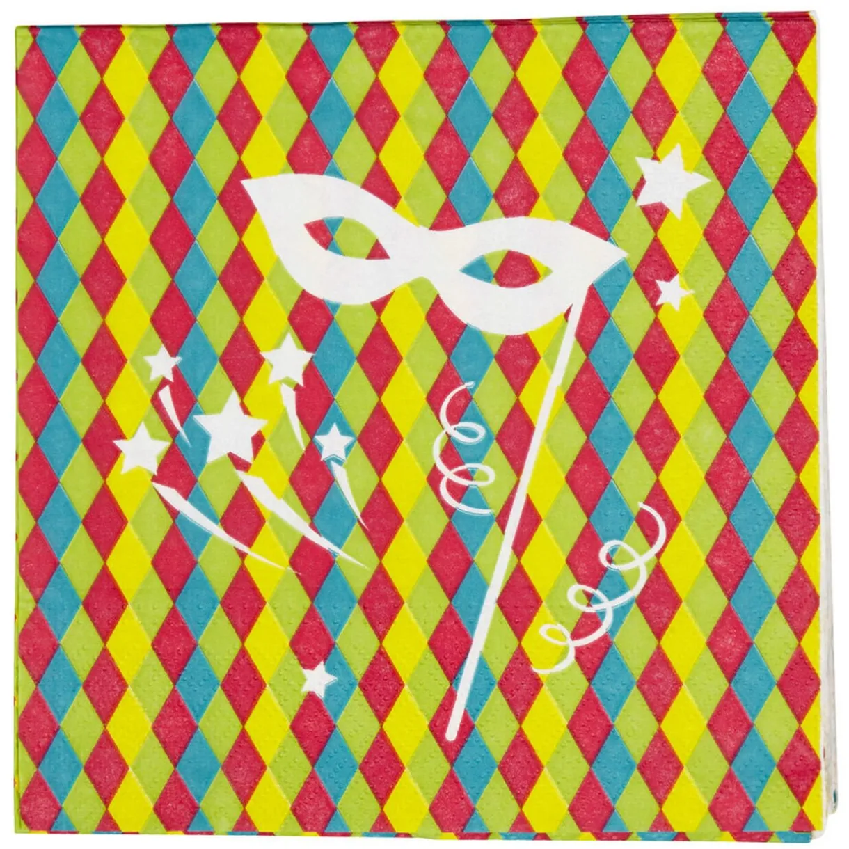 20 serviettes en papier design arlequin multicolore, dim. 33×33 cm.