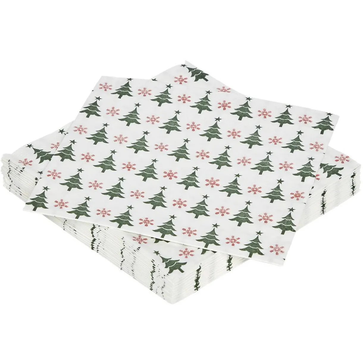 Lot de 20 serviettes jetables à motifs flocons rouges et sapins de Noël pour décorer votre table à l’occasion des repas de fin d’année.