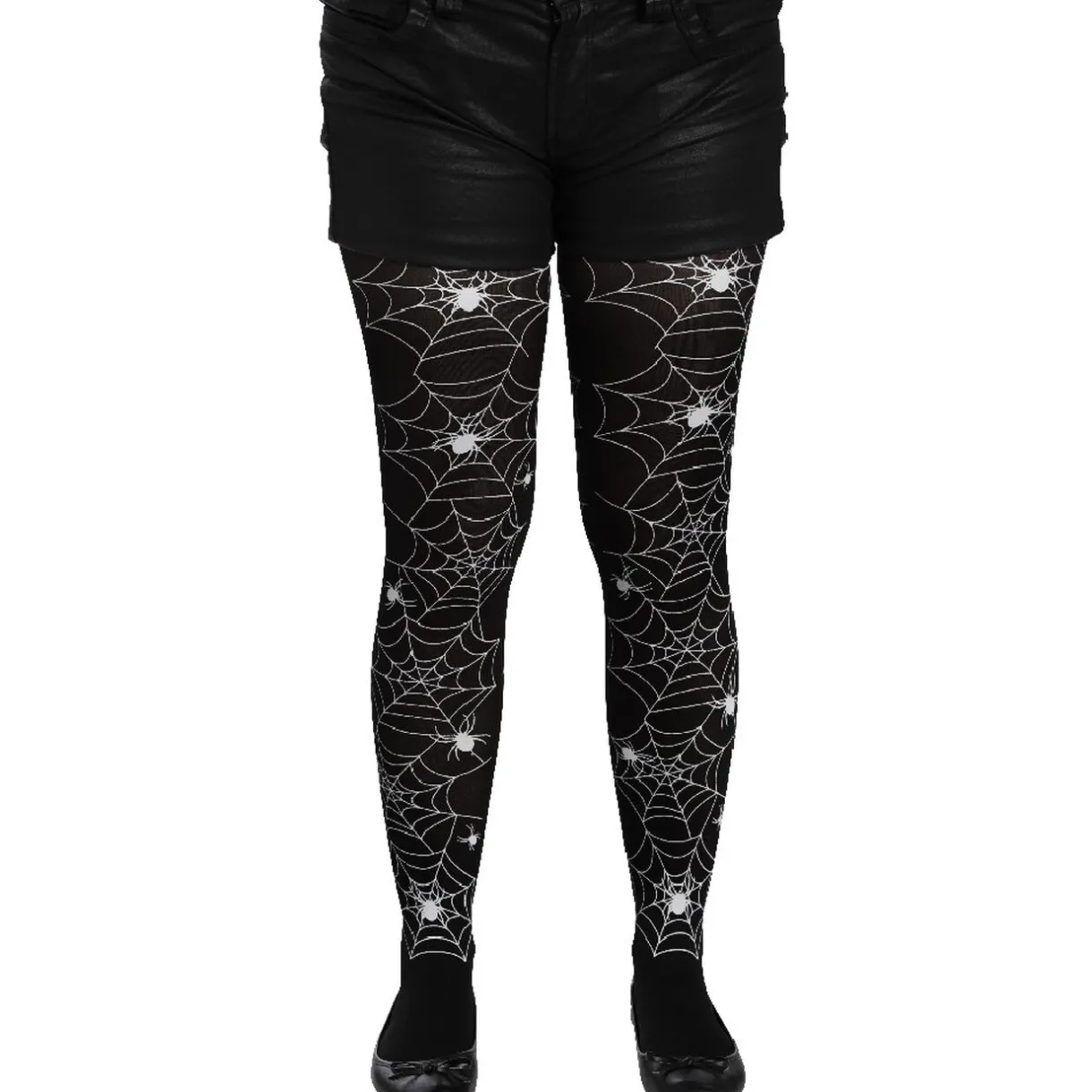 Collant pour enfant opaque noir motif toiles d’araignée, idéal pour compléter un déguisement à l’occasion de Halloween.