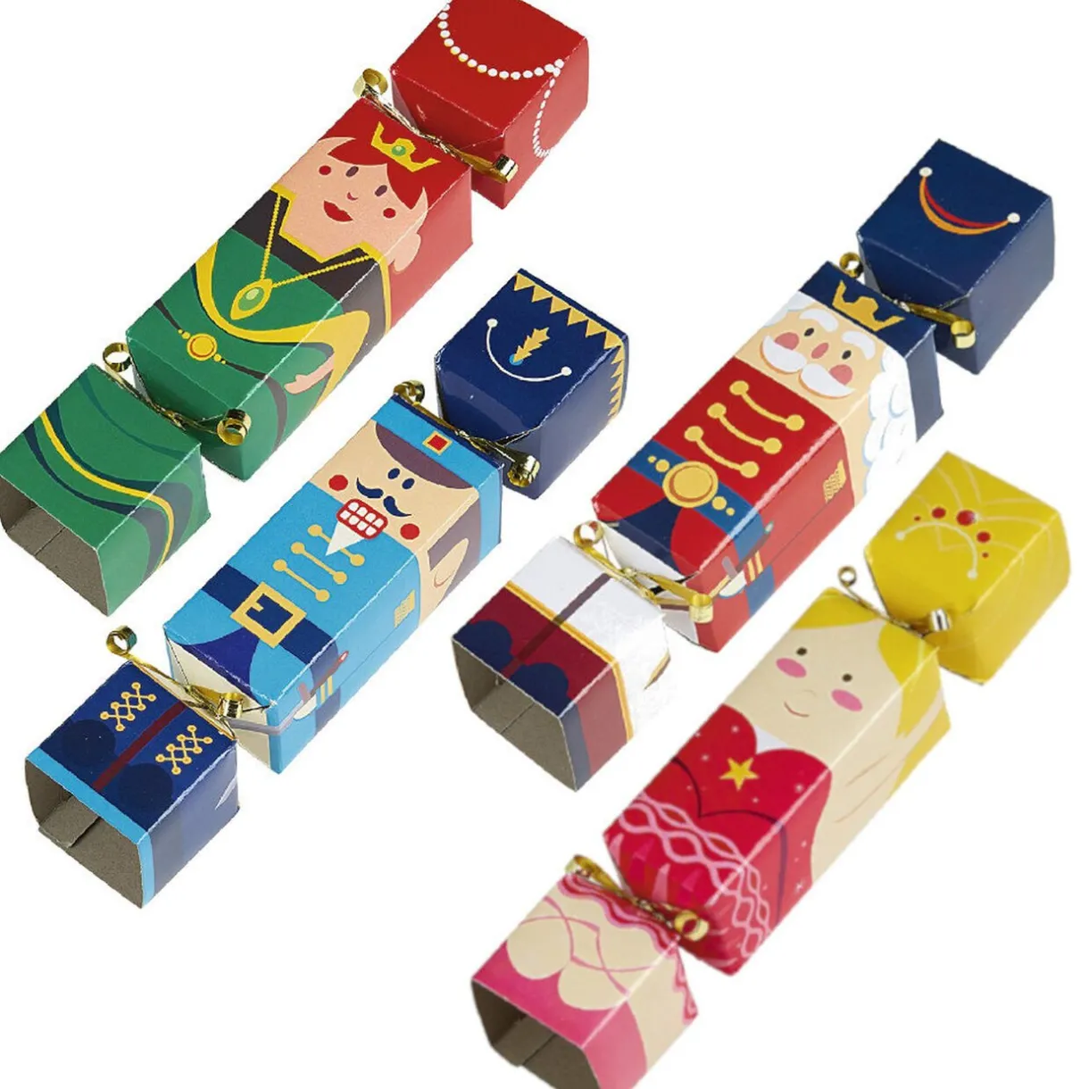Lot de 8 crackers en forme de papillottes représentant des personnages casse noisette avec dans chacun d’eux un masque spécial selfie.