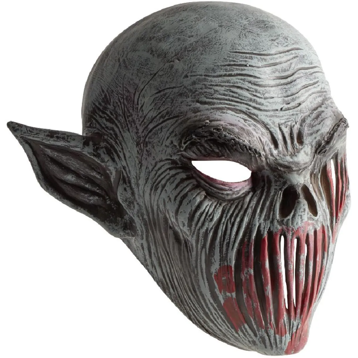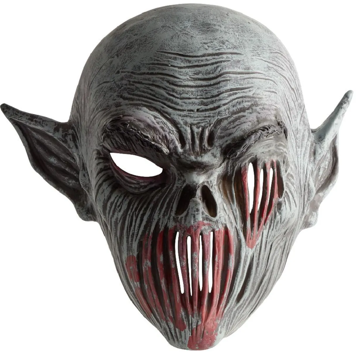 Masque de diable zombie gris et rouge pour adulte, idéal pour accessoiriser votre déguisement le jour d’Halloween.