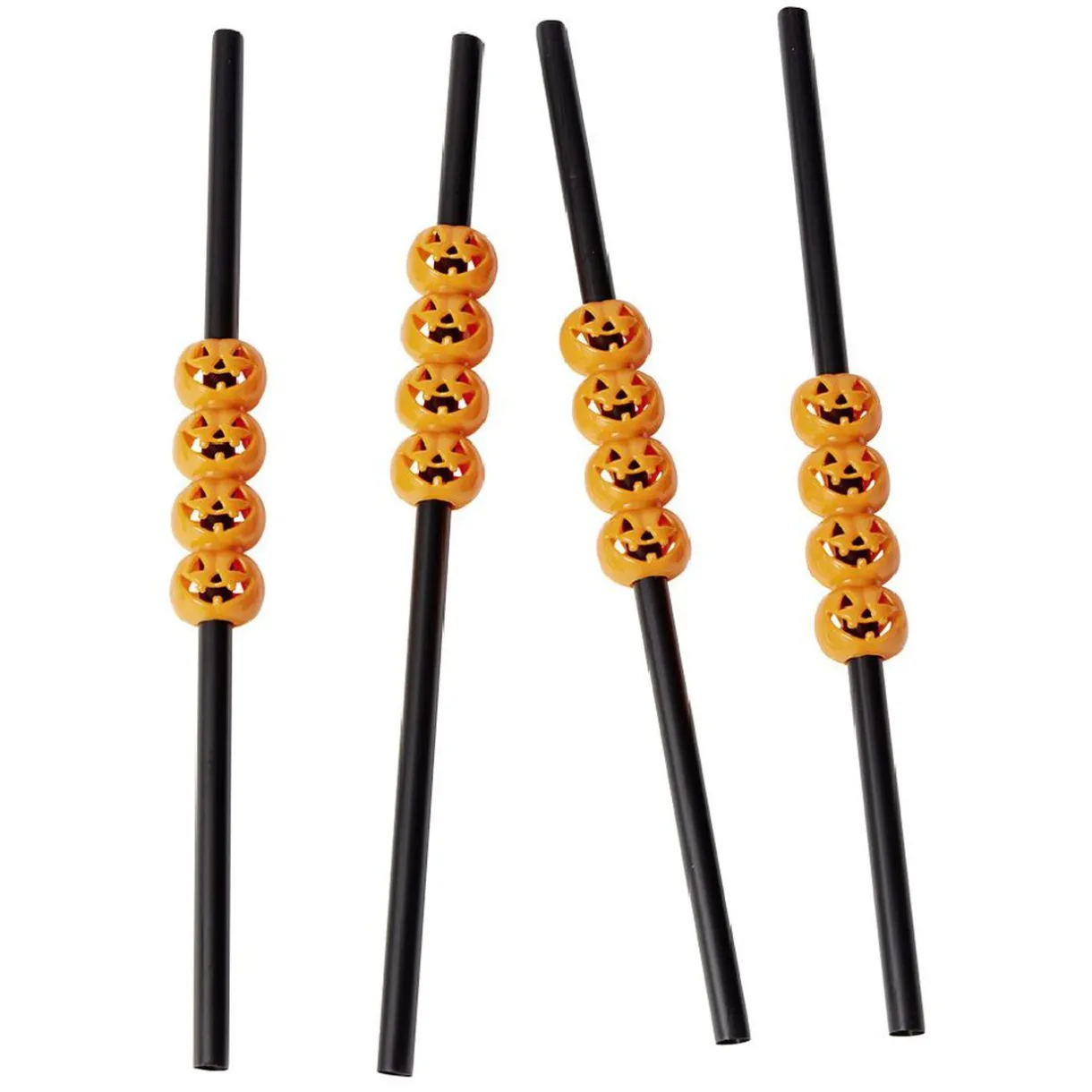 Set de 4 pailles en plastique orange avec décor citrouille. Réutilisables et colorées, idéal pour la décoration de votre table à l’occasion d’Halloween.