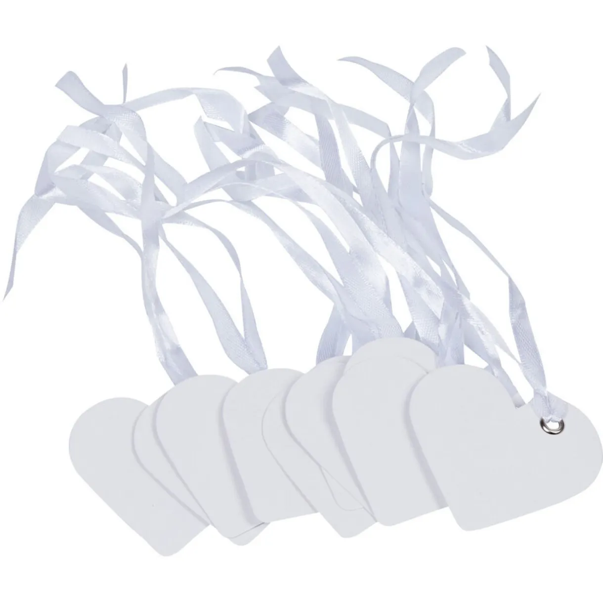 10 porte-noms en forme de coeur blanc en carton dim. 5,5×5,5 cm, avec ruban.