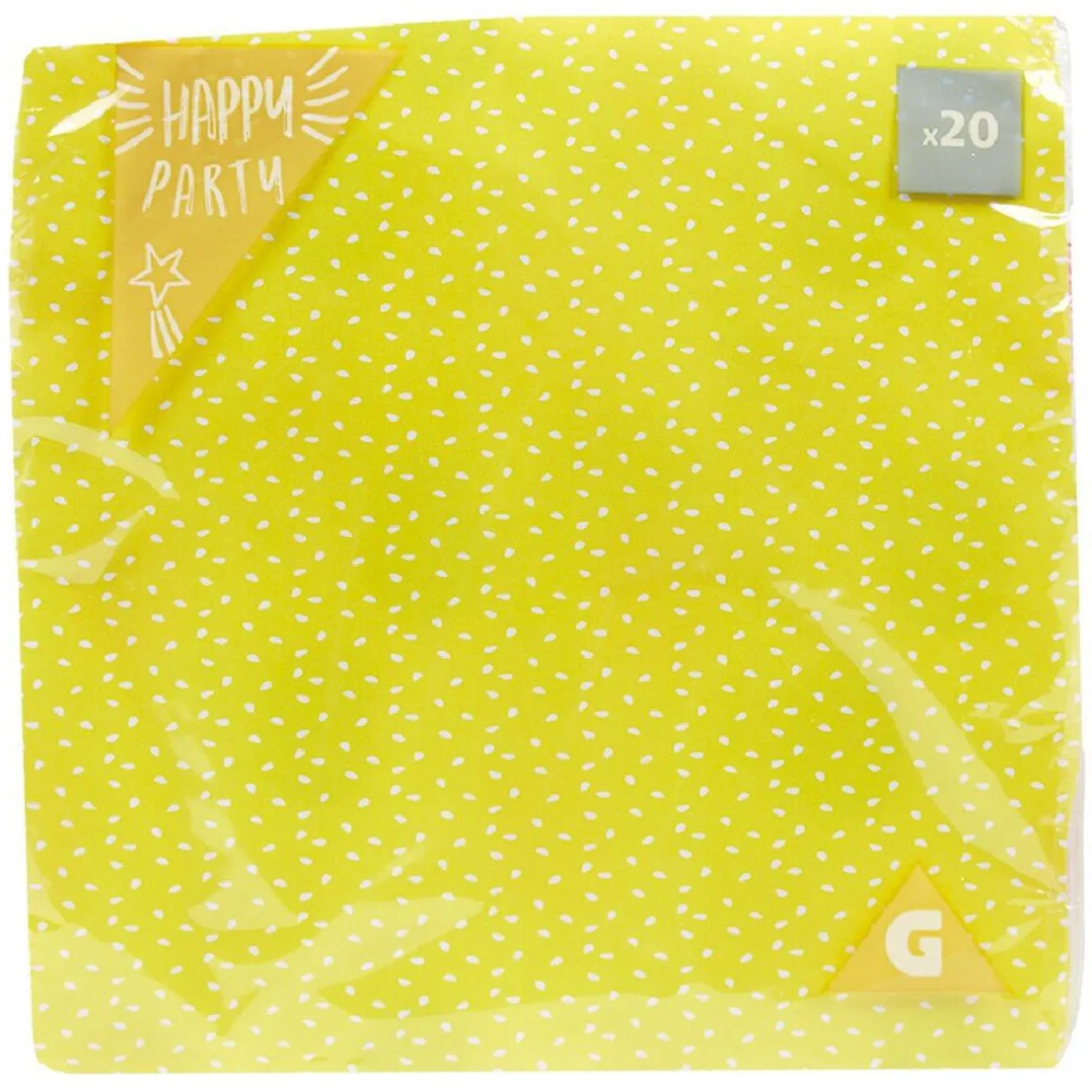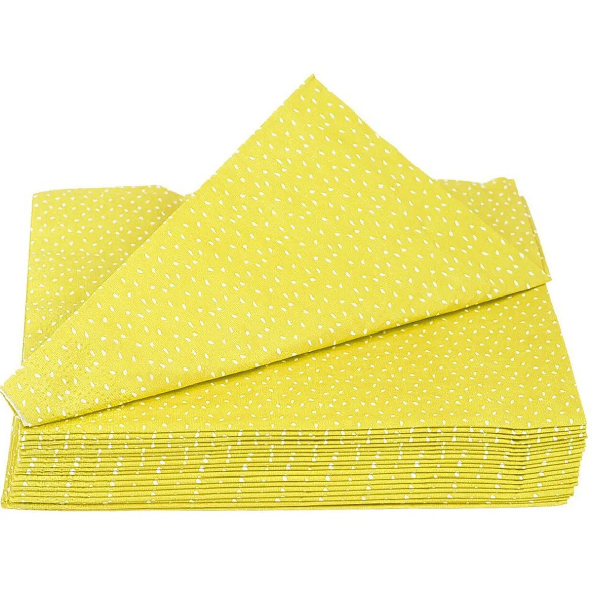 Lot de 20 serviettes en papier jaune au motif confettis blanc.